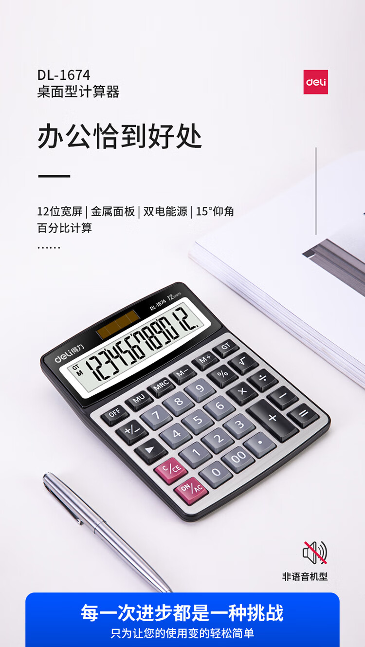 商品名稱:得力1674 金屬面板桌面辦公計(jì)算器 財(cái)務(wù)金融計(jì)算 耐磨按鍵桌面計(jì)算機(jī) 辦公用品 銀色