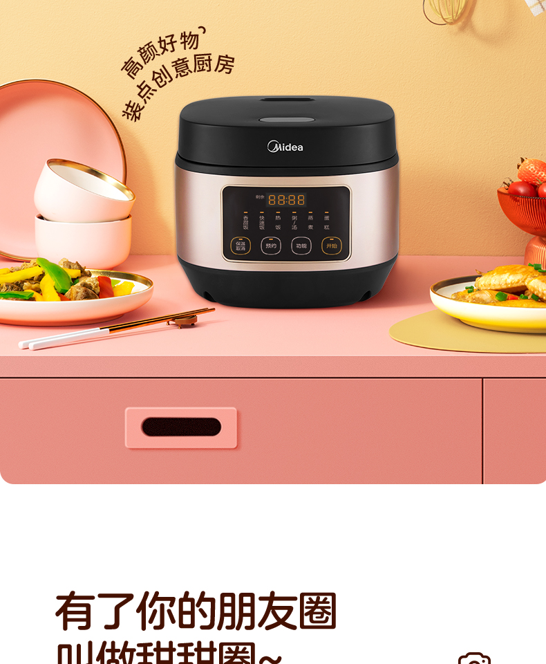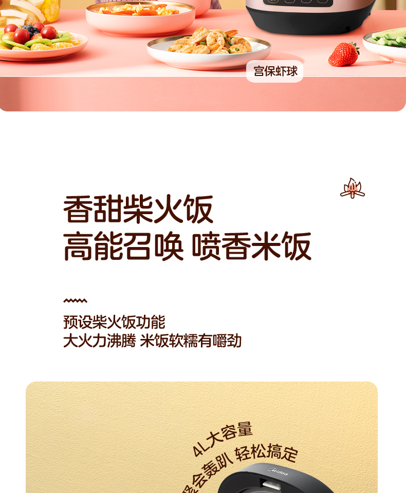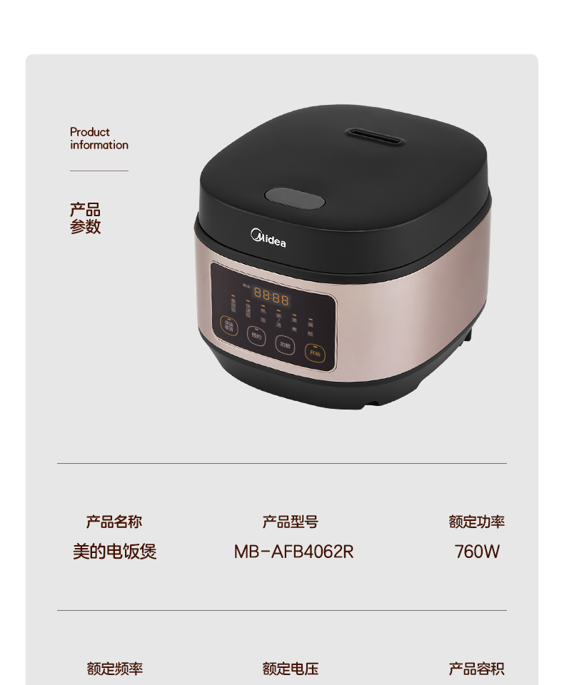 商品名稱:美的MB-AFB4062R 電飯煲 電飯鍋底盤加熱智能自動4L不粘鍋聚能釜定時預約燒湯燒飯