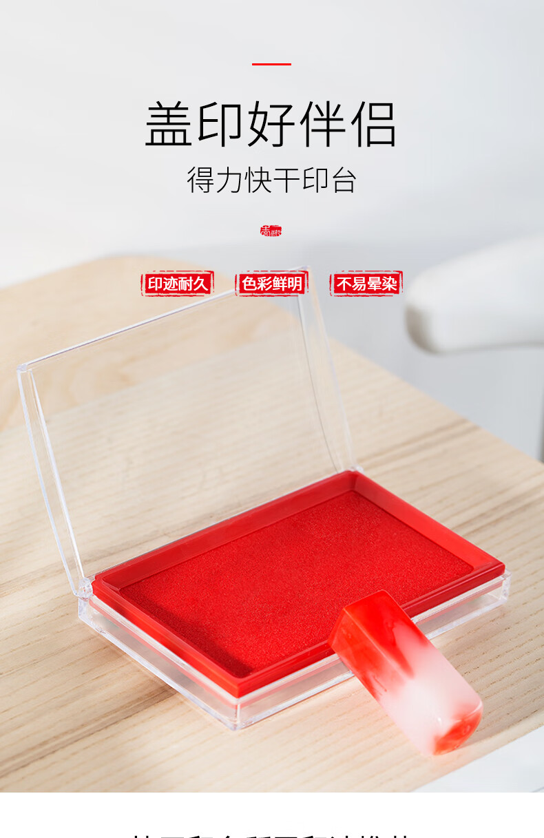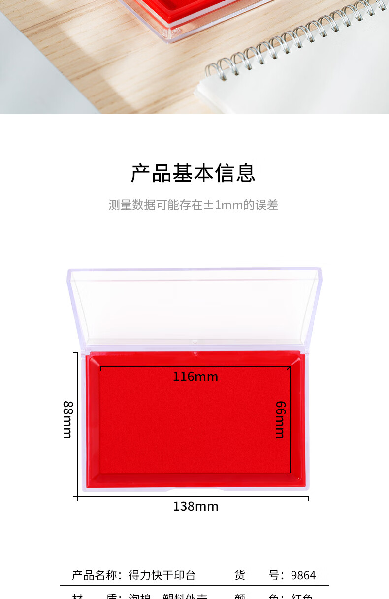 商品名稱:得力9864 印臺(tái) 137*88mm透明外殼方形快干印臺(tái)印泥 辦公用品