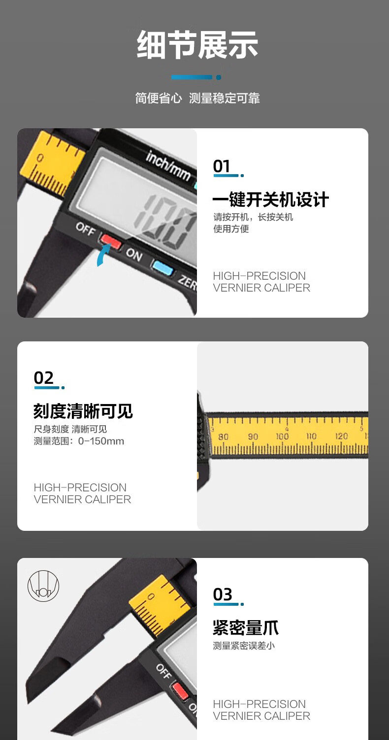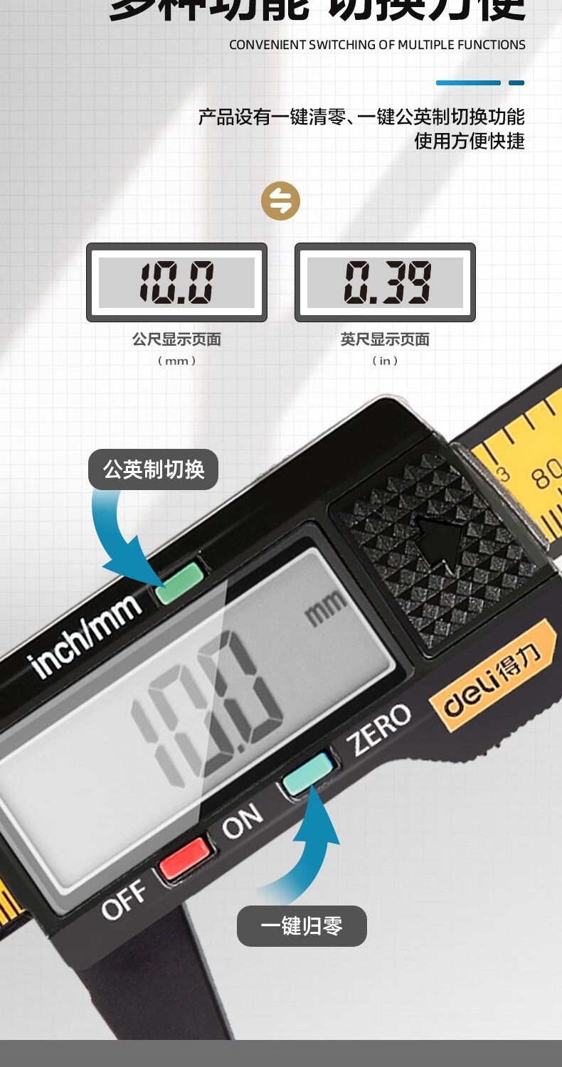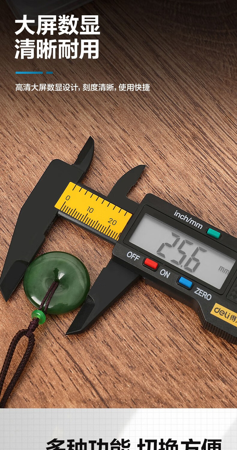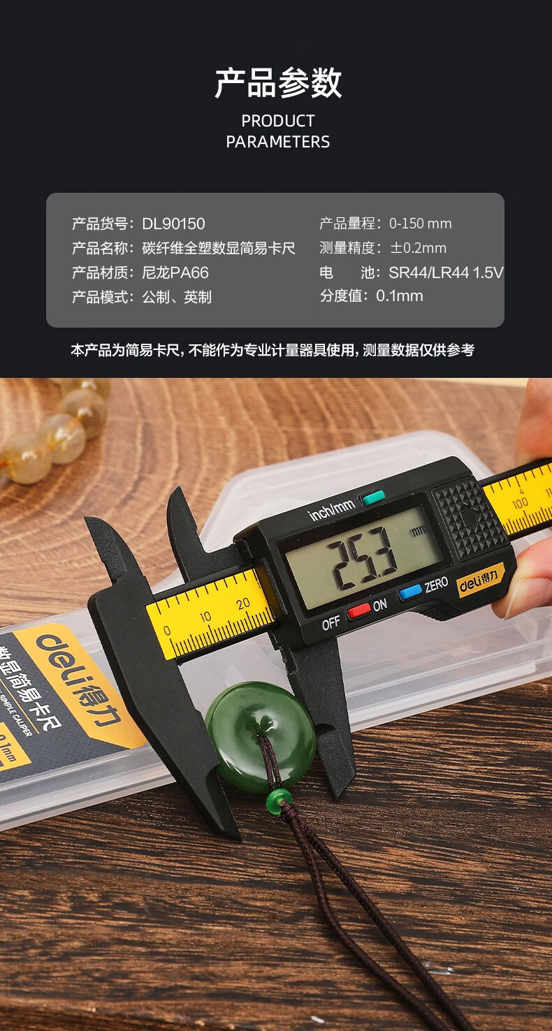 商品名稱:得力DL90150 數(shù)顯卡尺 碳纖維電子游標卡尺高精度內(nèi)外徑家用文玩古玩珠寶測量