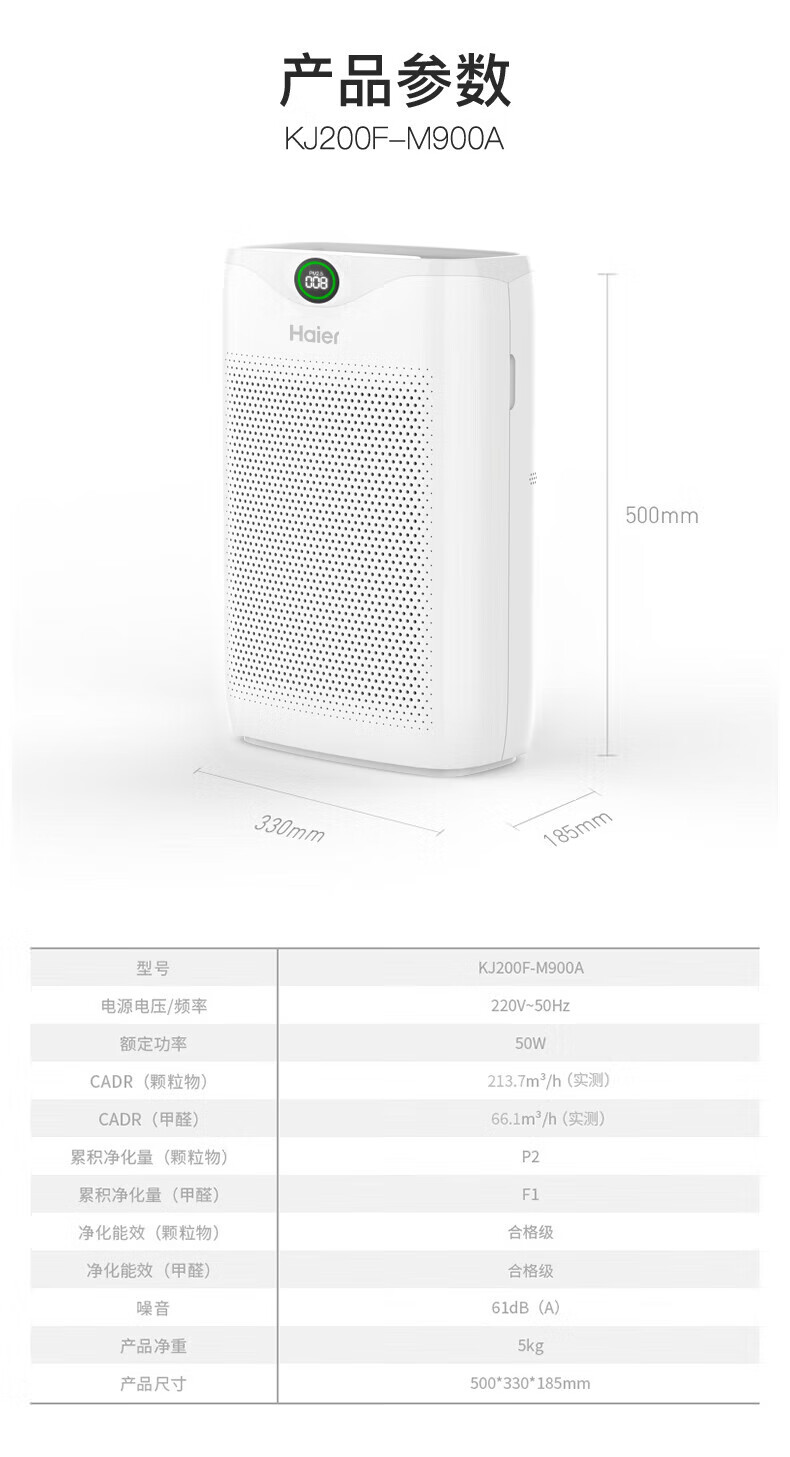 商品名稱:海爾KJ200F-M900A 空氣凈化器 除甲醛除霧霾除煙味母嬰家用除灰塵殺菌