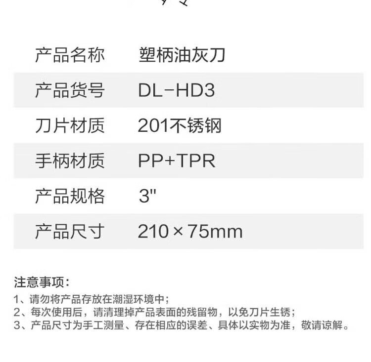 商品名稱:得力DL-HD3 不銹鋼油灰刀 清潔刮刀鏟刀抹灰膩?zhàn)拥?英寸
