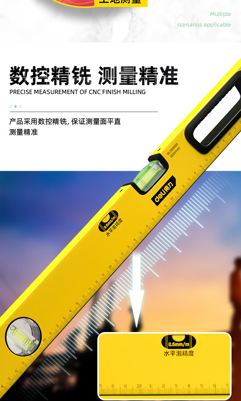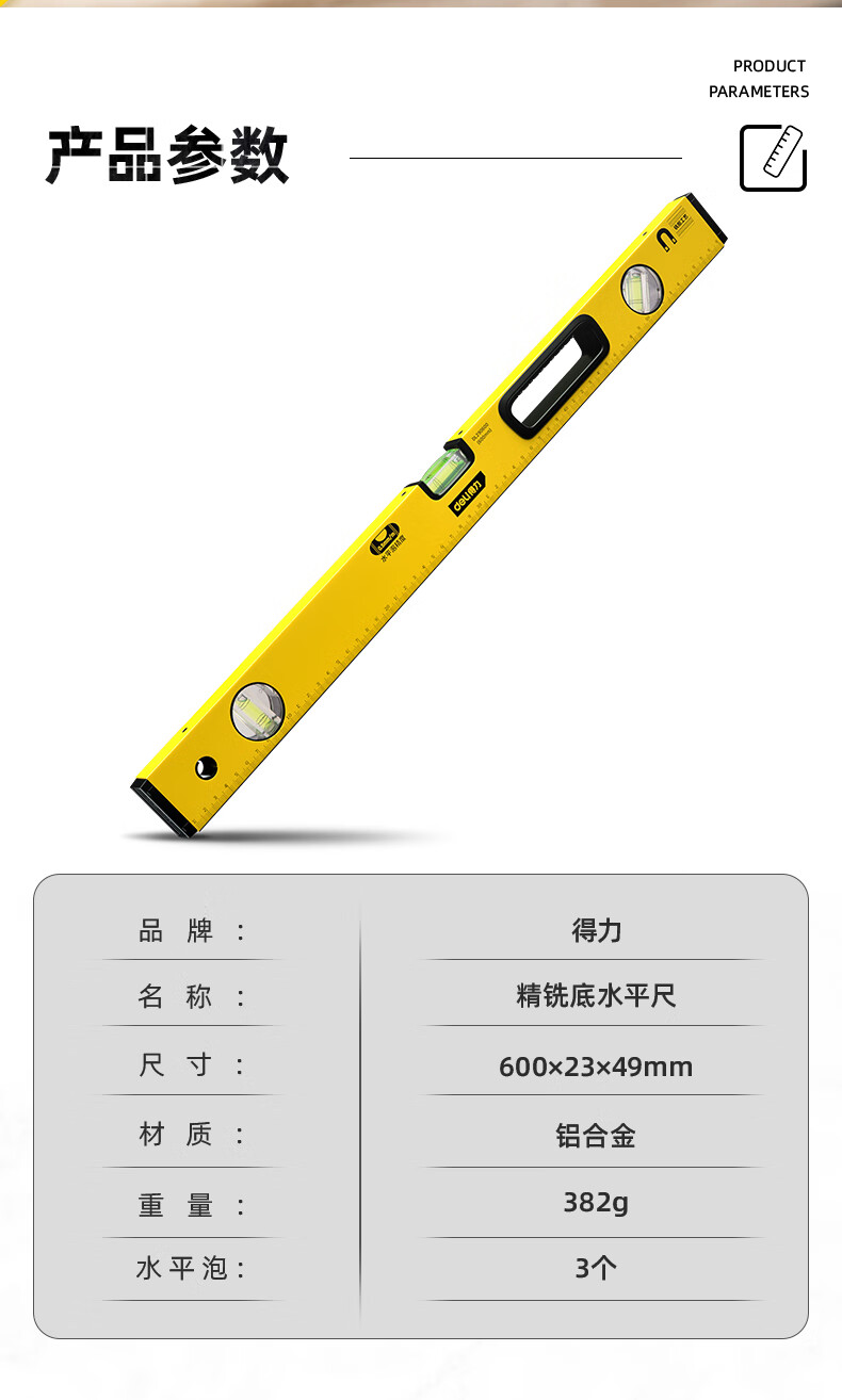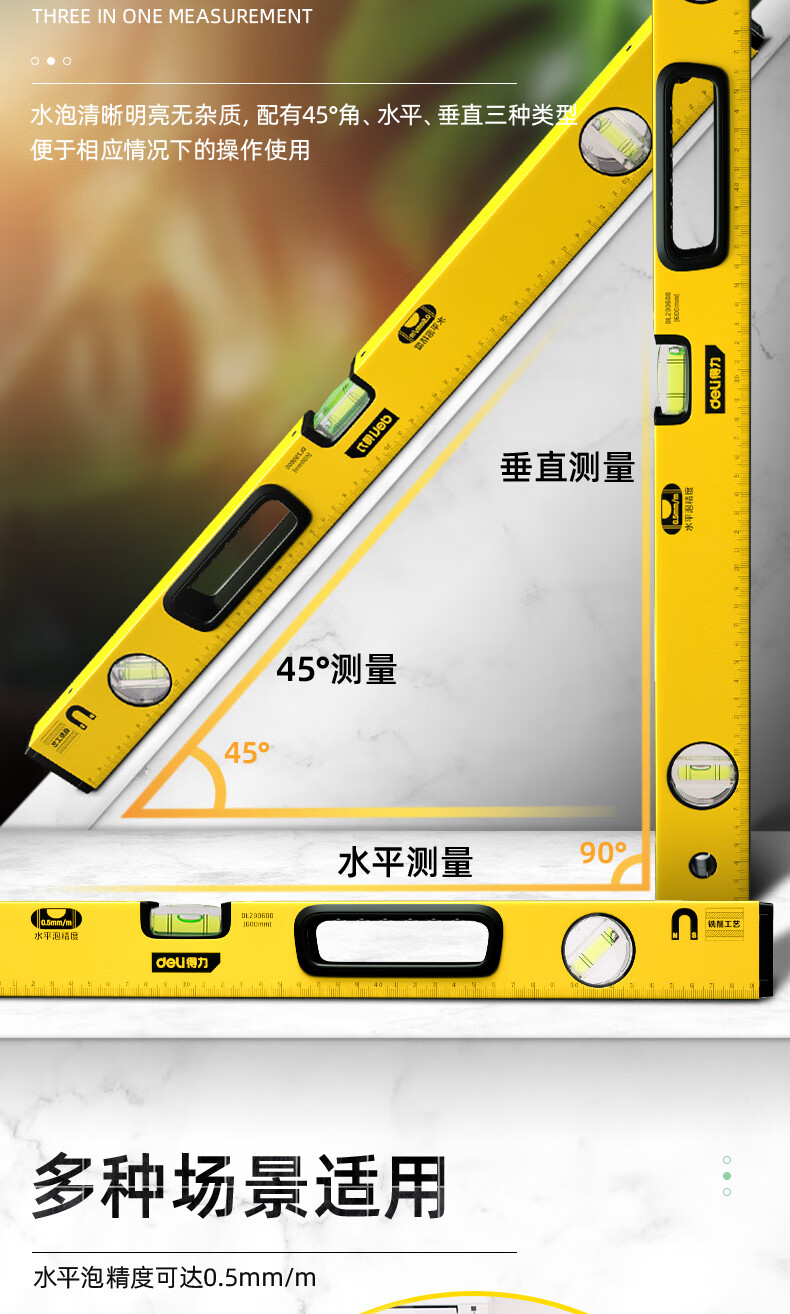 商品名稱:得力DL290600 強磁多角度水平尺 鋁合金水平測量尺水平儀600mm