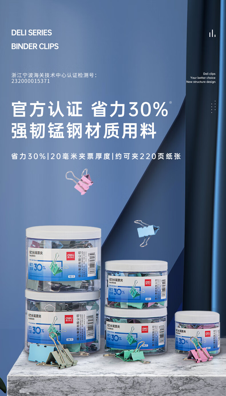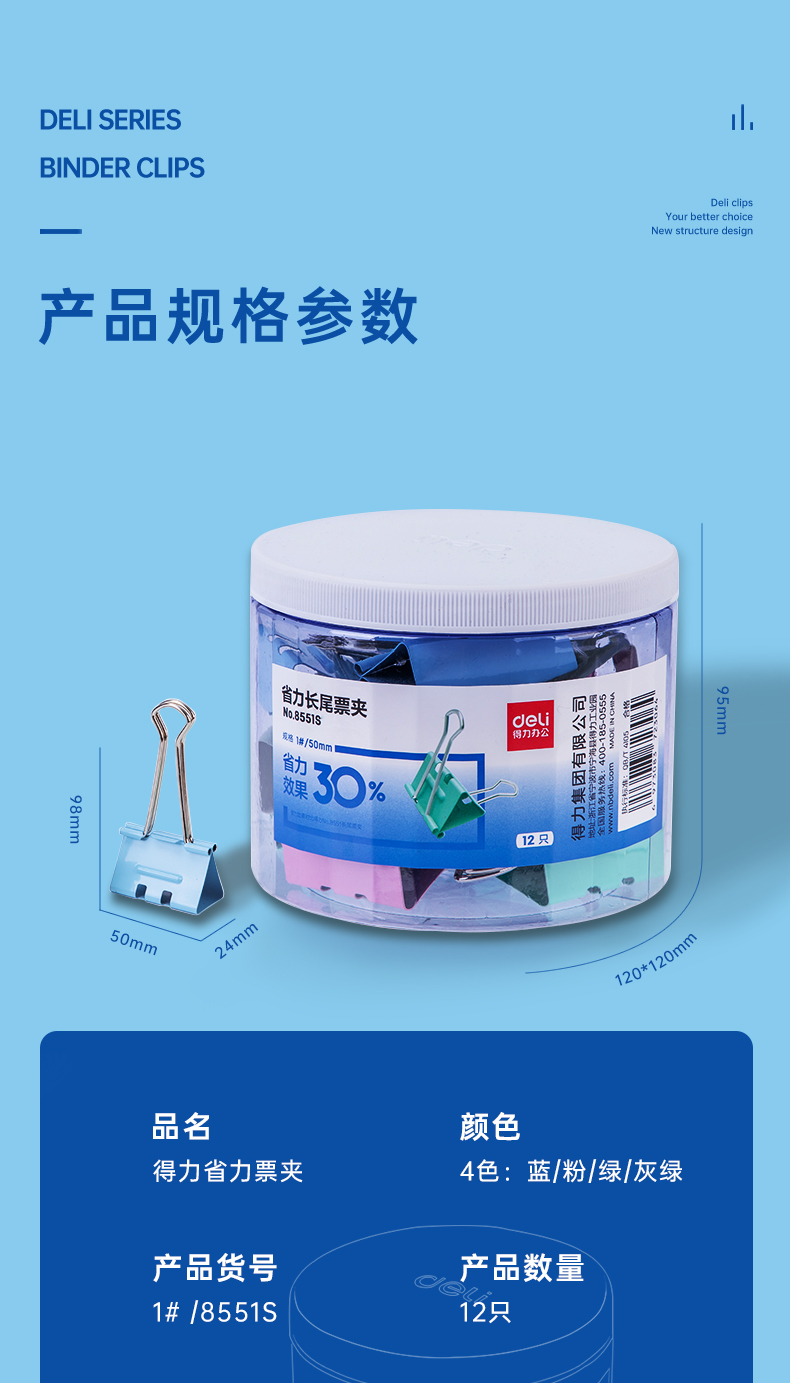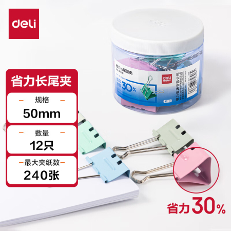 商品名稱:得力8551S 省力長尾夾 1#50mm超大號金屬票夾燕尾夾票據(jù)文件夾子 辦公用品 12只/筒