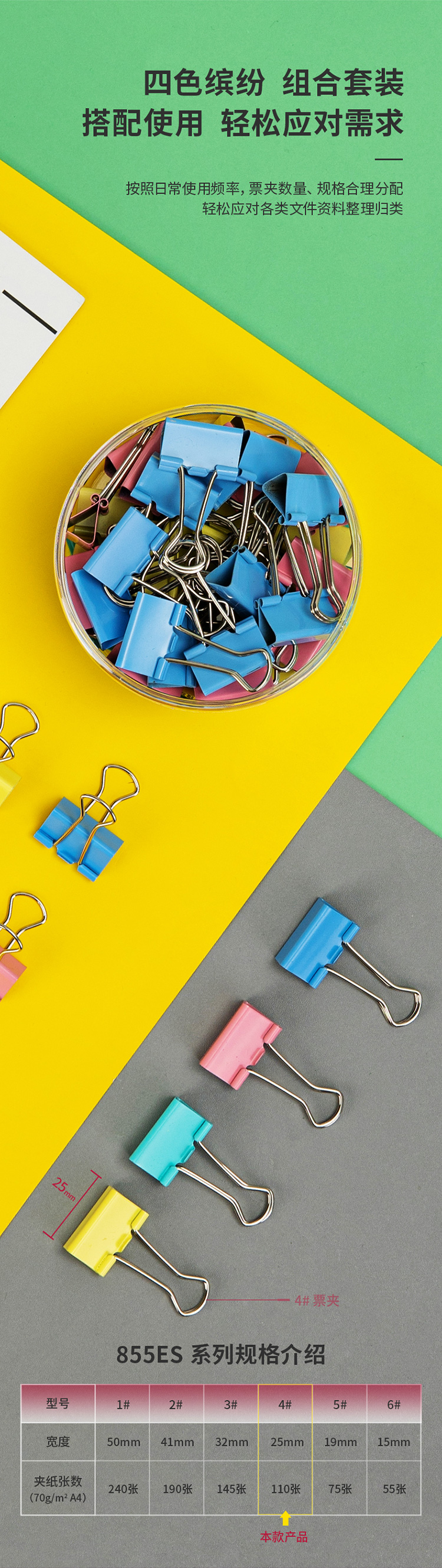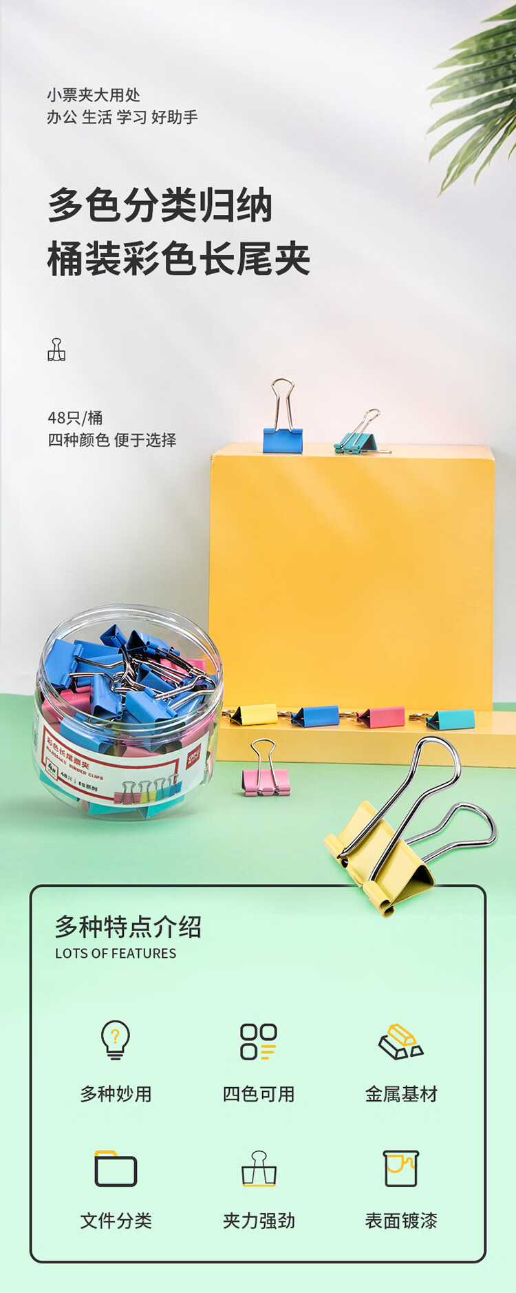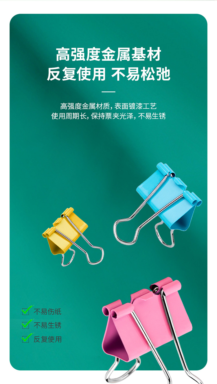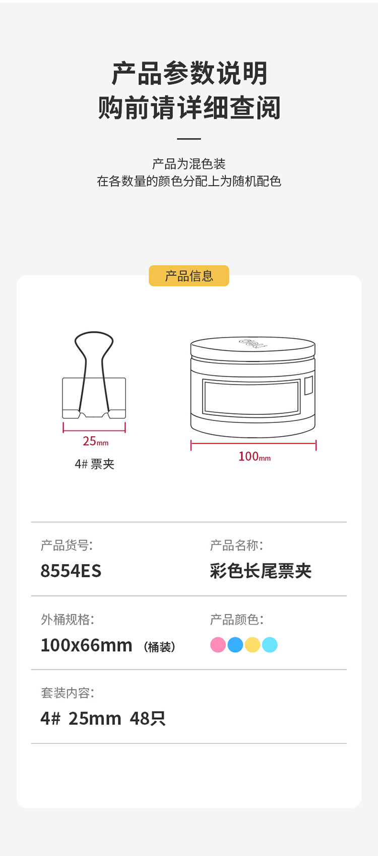 商品名稱:得力8554ES 彩色長尾夾 4#25mm中號金屬票夾燕尾夾票據(jù)文件夾子 辦公用品 48只/筒