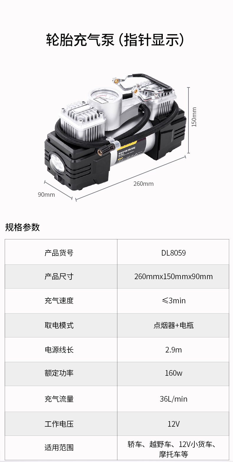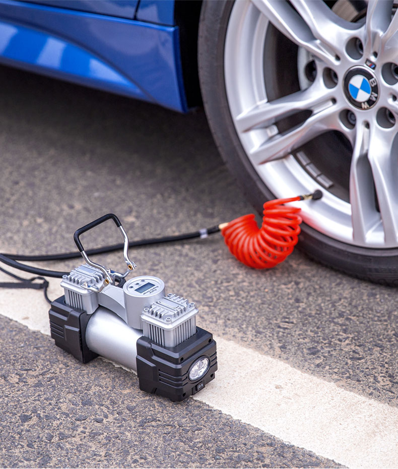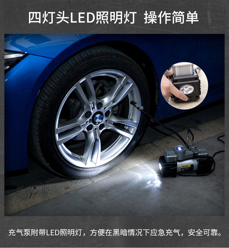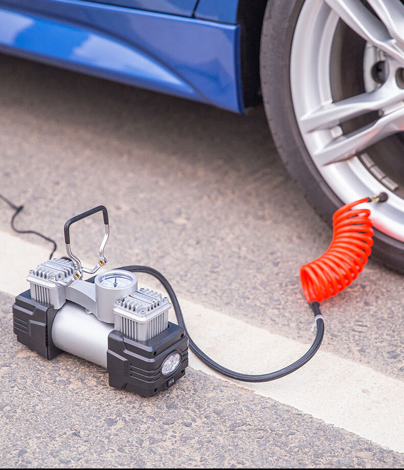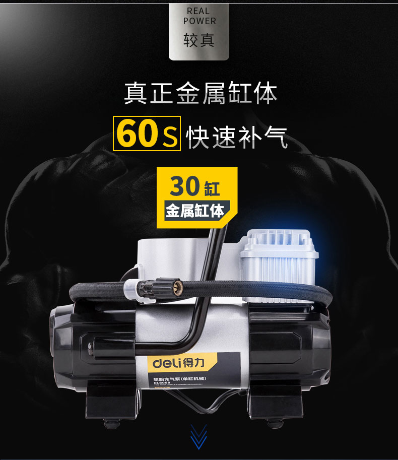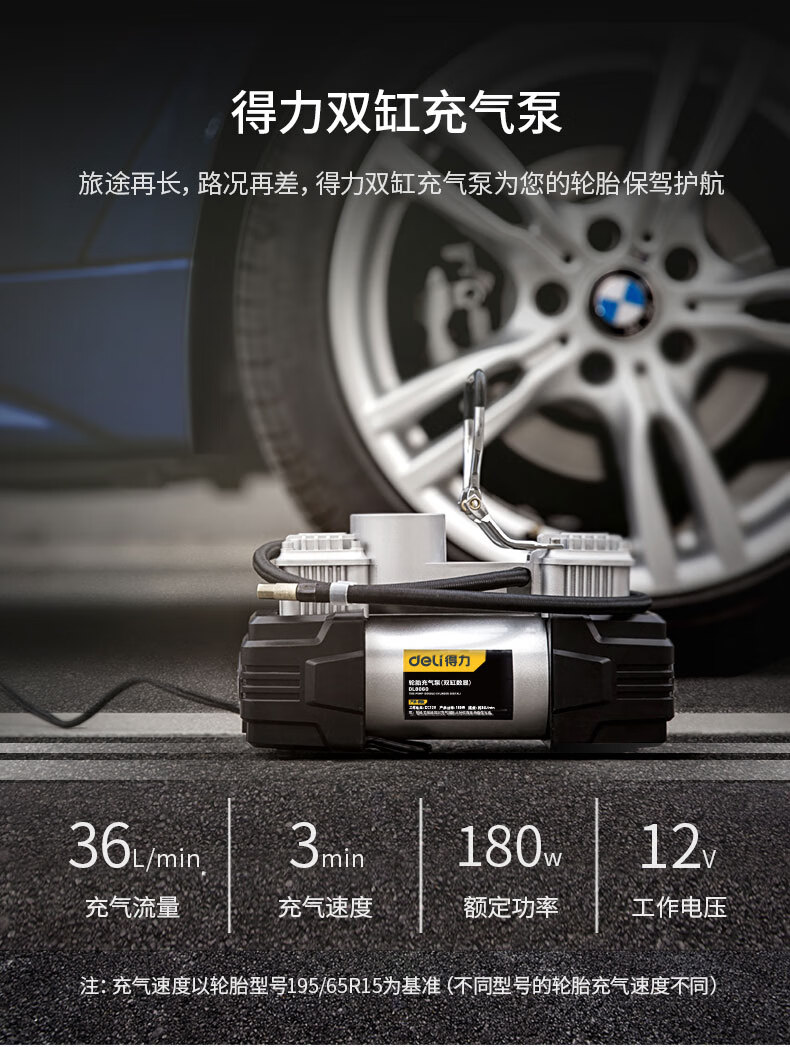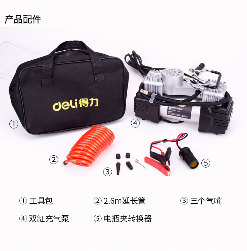 商品名稱:得力DL8060 車載充氣泵 雙缸高壓便攜式轎車輪胎家車用打氣泵筒電動汽車 雙30缸數(shù)顯預設胎壓充氣泵