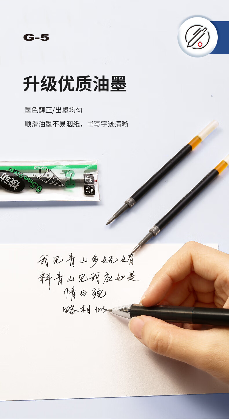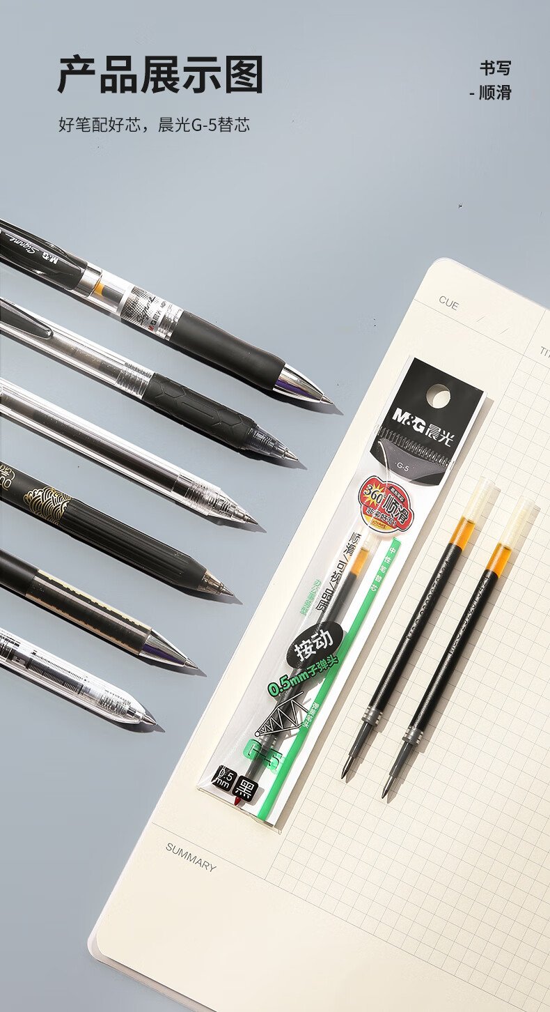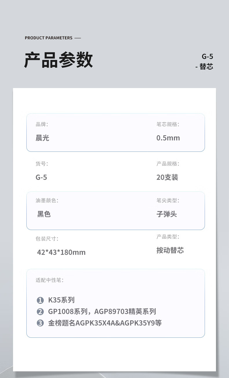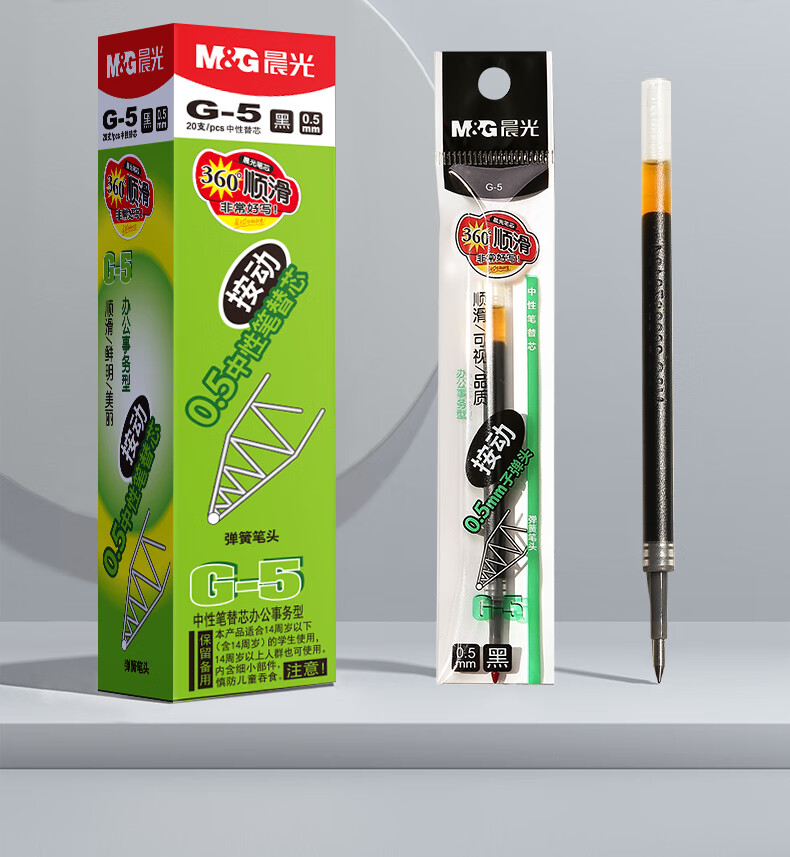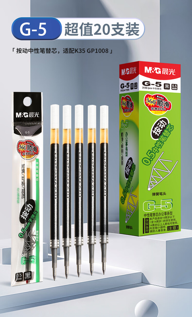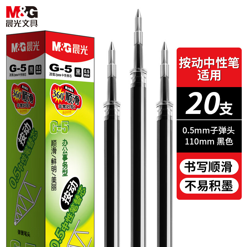 商品名稱:晨光G-5 中性筆芯 0.5mm按動(dòng)子彈頭簽字筆替芯 水筆芯 1008/K35/S01/S08適用 20支/盒