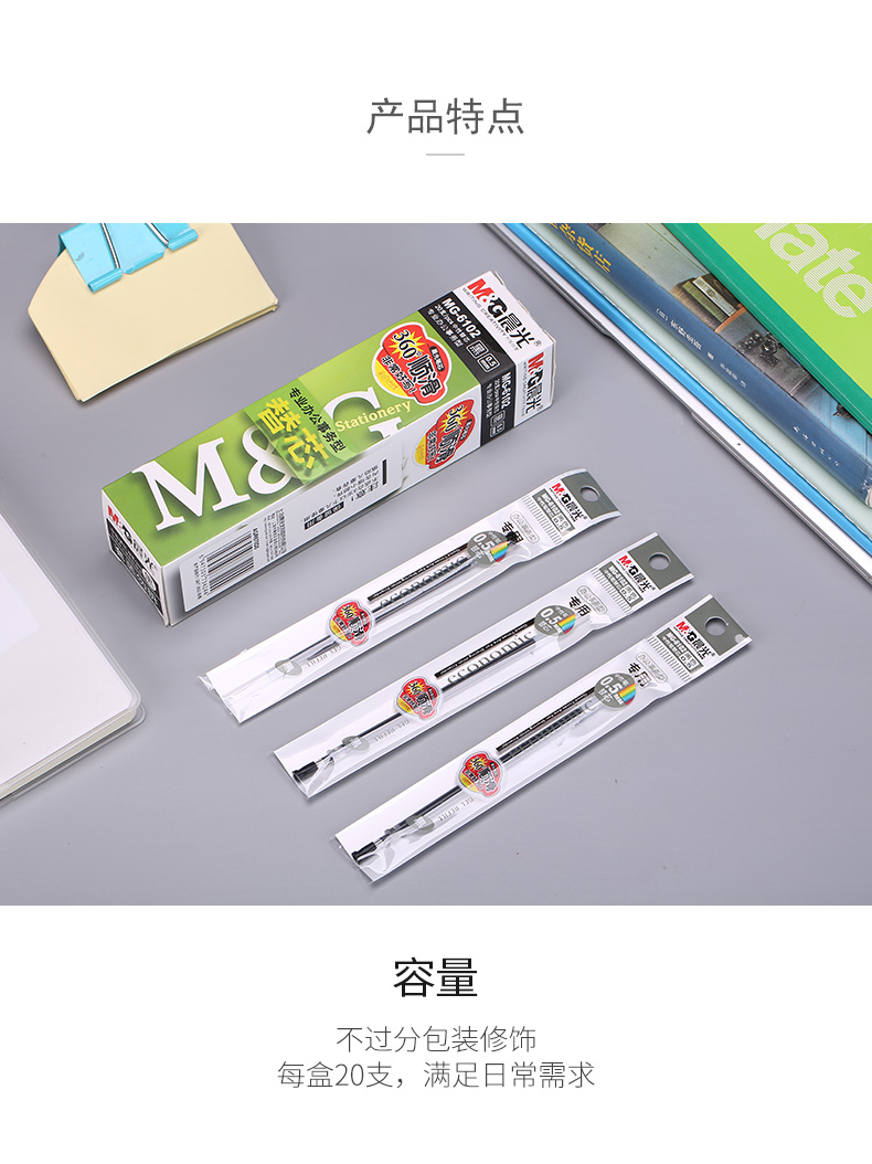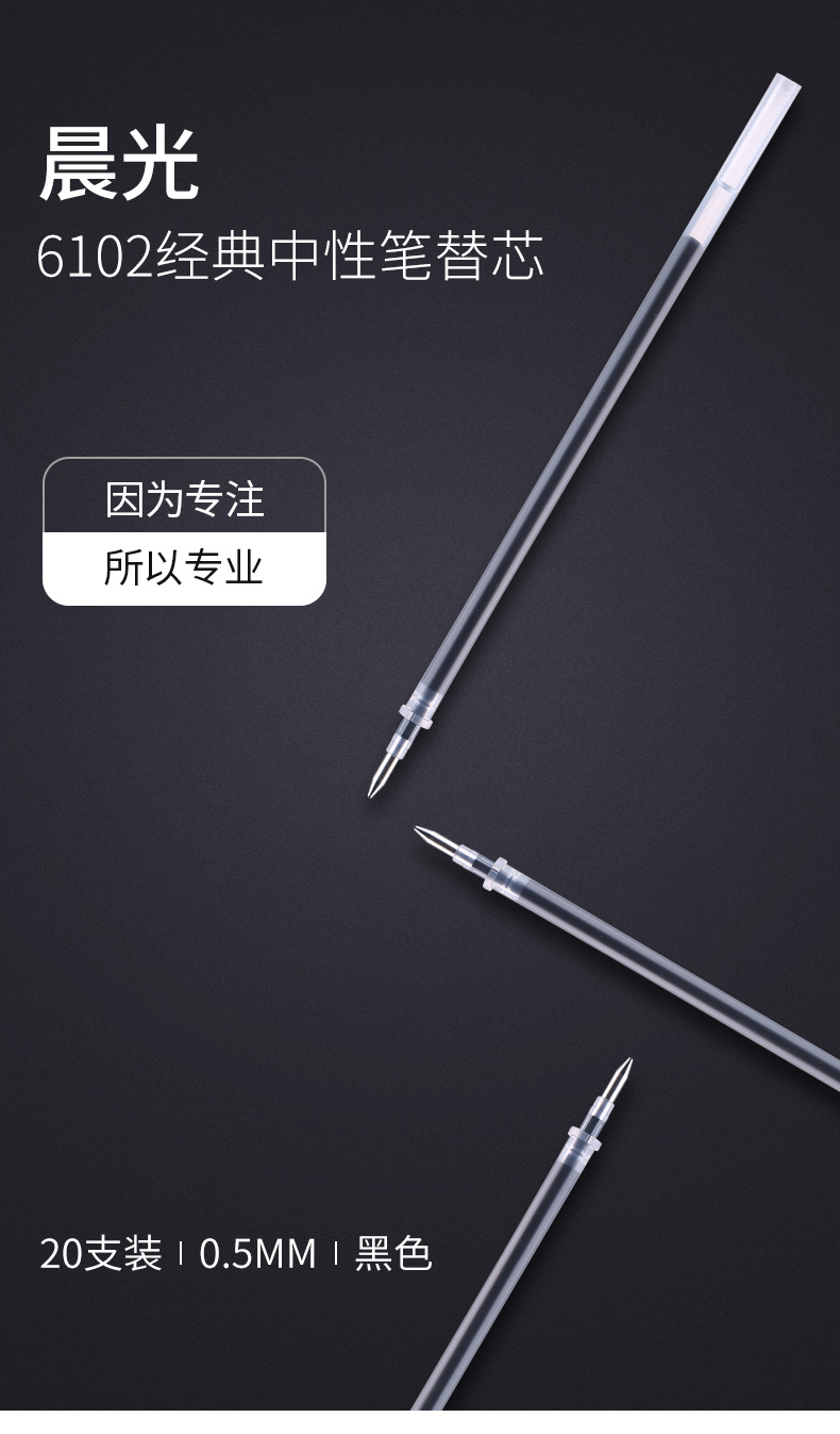 商品名稱:晨光MG6102 中性筆芯 0.5mm拔蓋子彈頭筆芯 簽字筆替芯 水筆芯 Q7/ 6600/33109適用 20支/盒