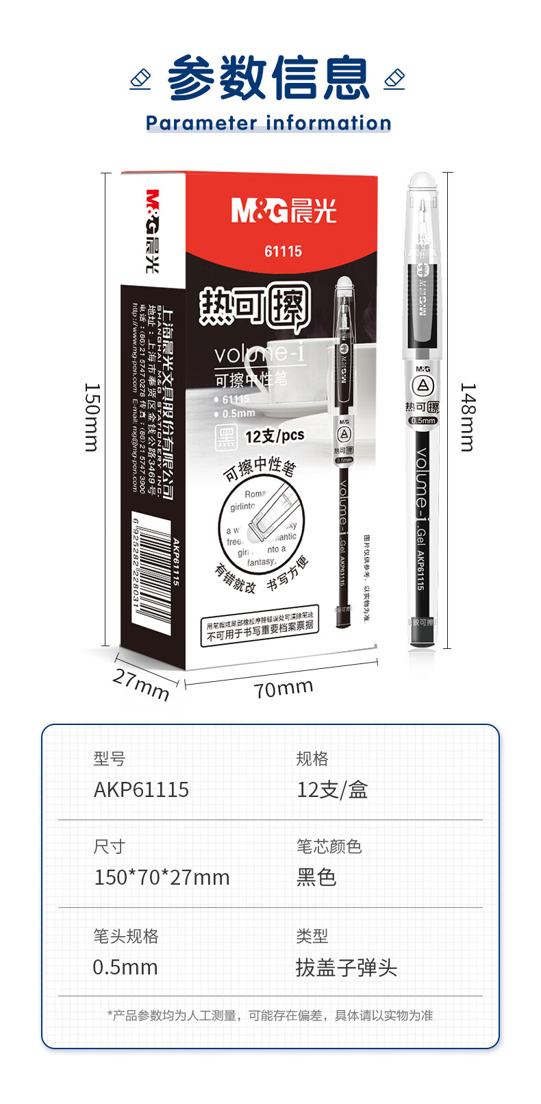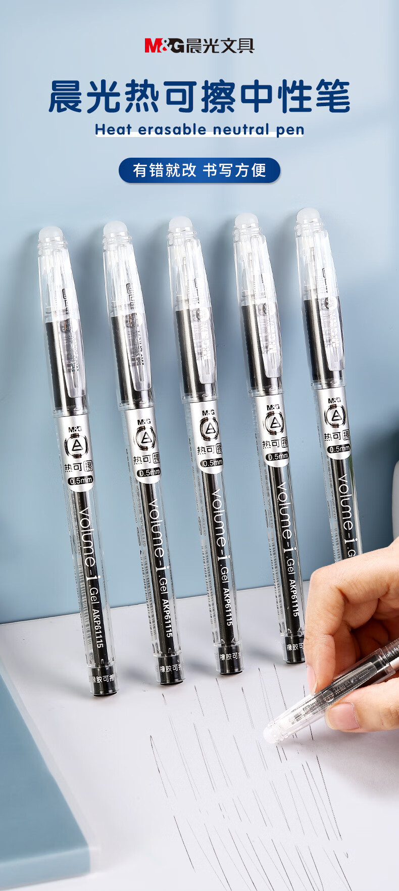 商品名稱(chēng):晨光AKP61115A 熱可擦中性筆 0.5mm簡(jiǎn)約拔蓋子彈頭黑色水筆簽字筆 12支/盒