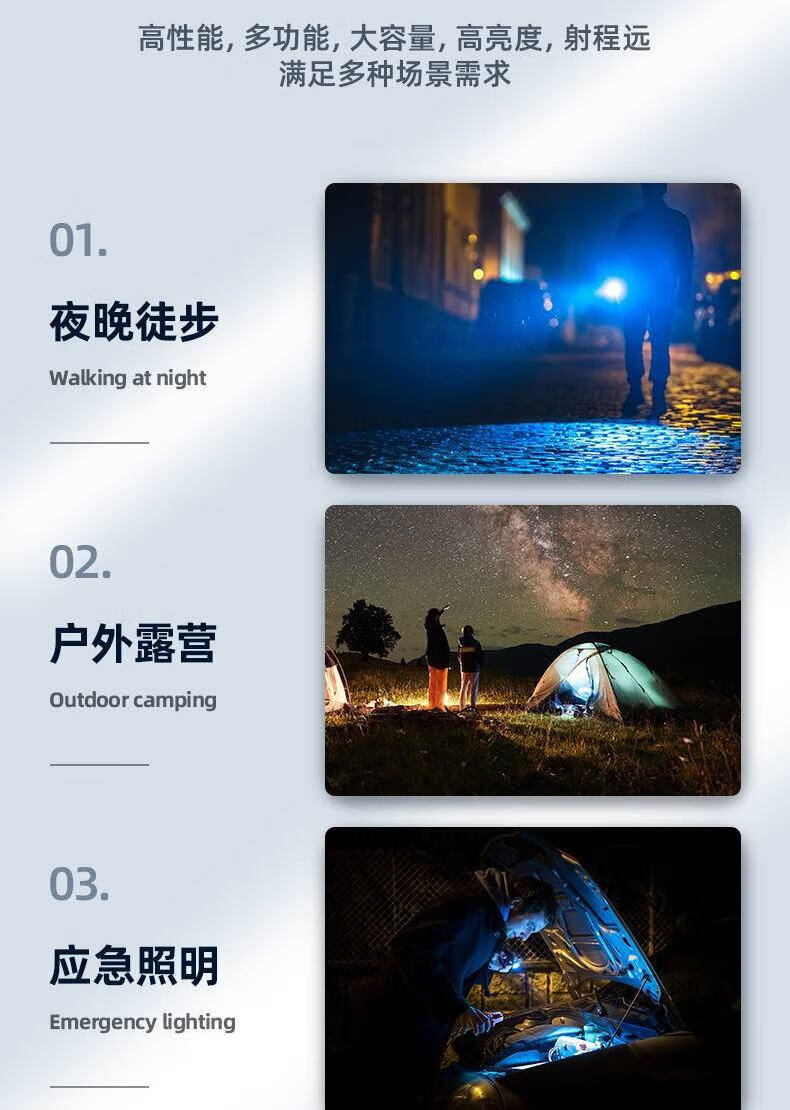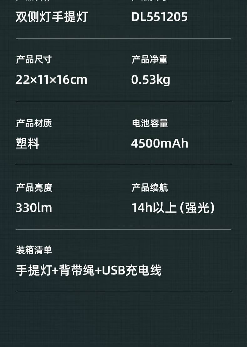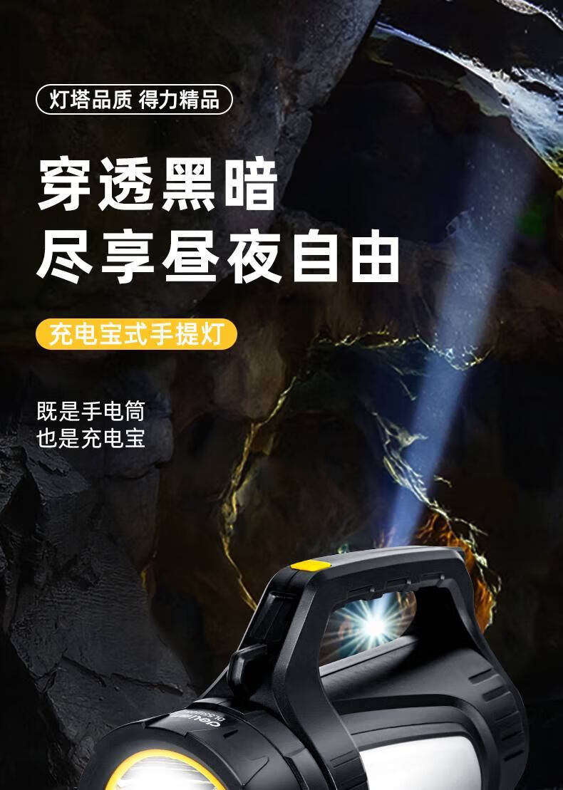 商品名稱:得力DL551205 雙側燈 高配版LED強光手電筒充電超亮礦燈應急燈