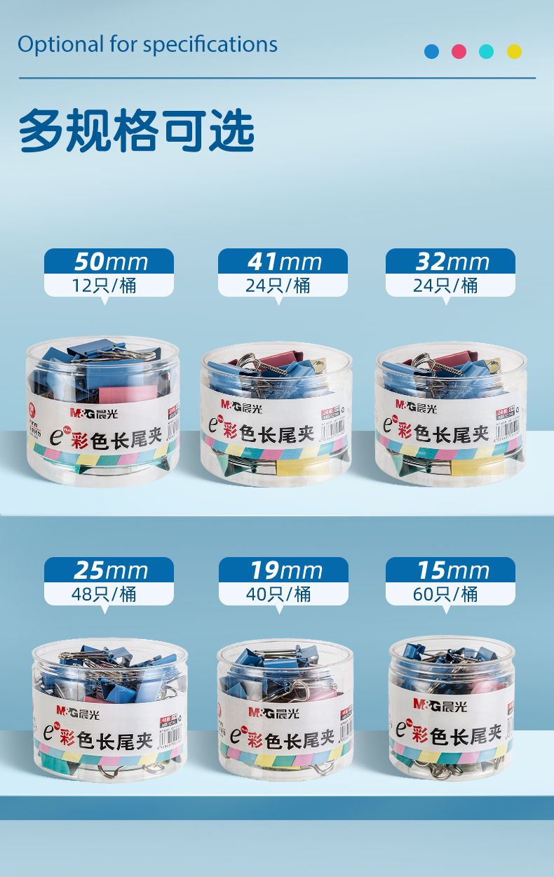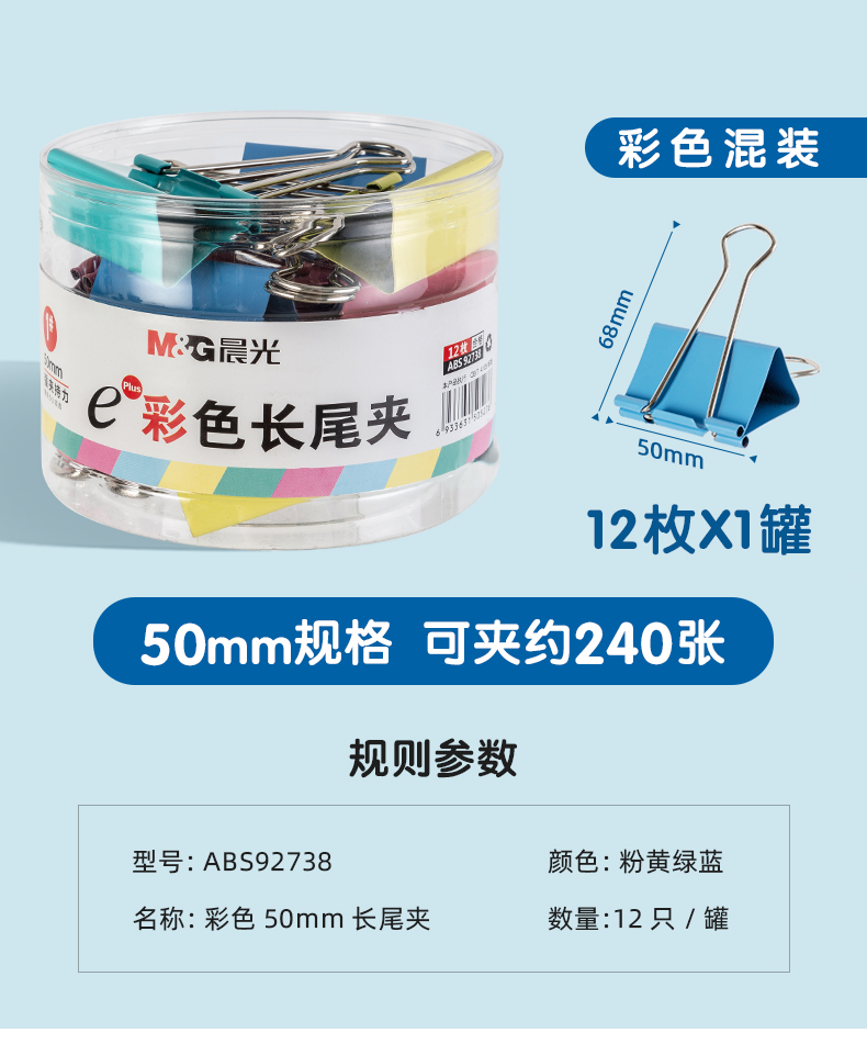 商品名稱:晨光ABS92738 彩色長尾夾 50mm金屬票據(jù)夾 Eplus系列辦公燕尾夾 12只/罐