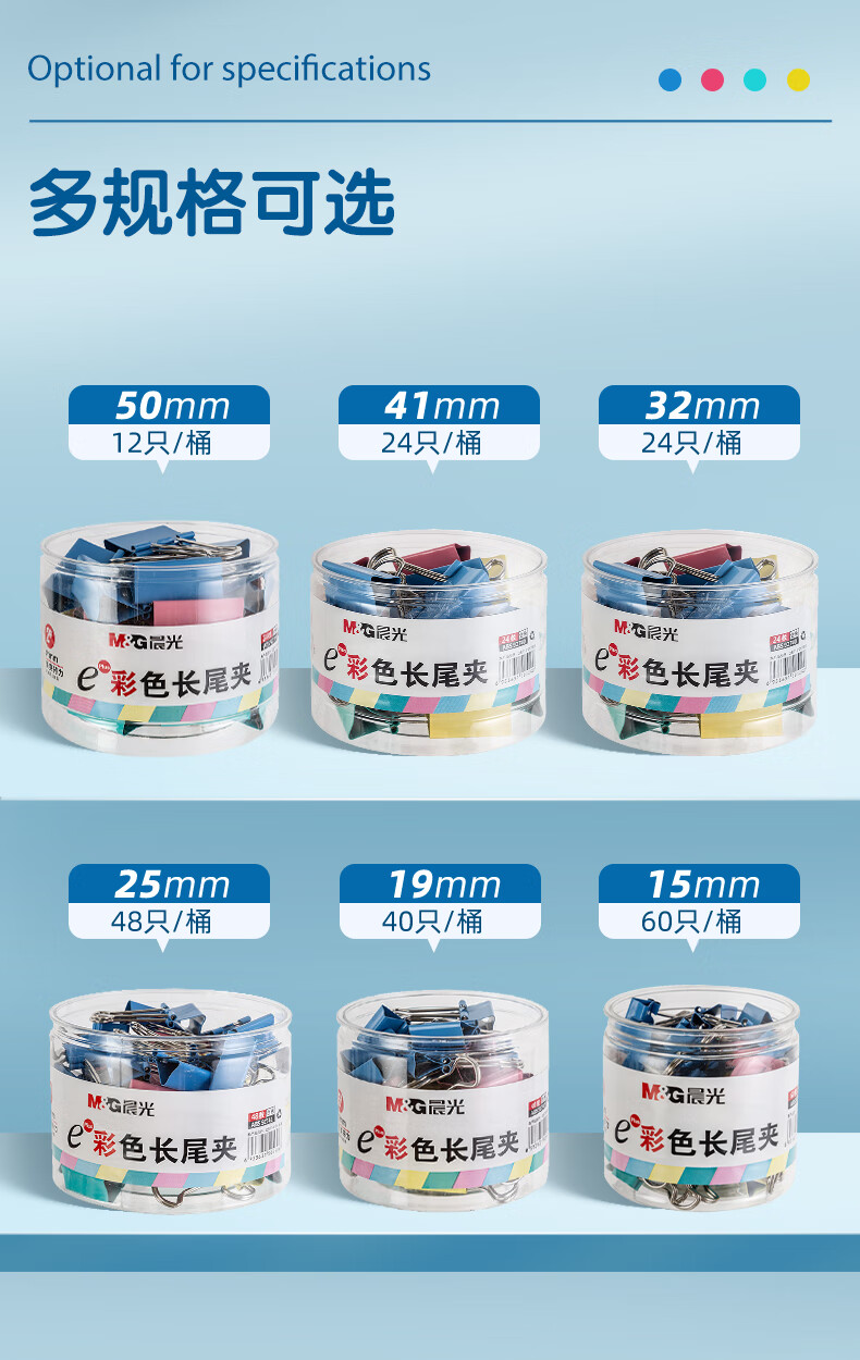 商品名稱:晨光ABS92739 彩色長(zhǎng)尾夾 2#41mm大號(hào)金屬票據(jù)夾 Eplus系列辦公燕尾夾 24只/罐