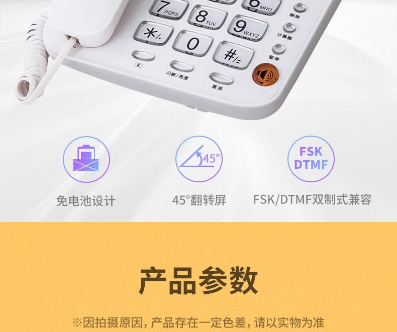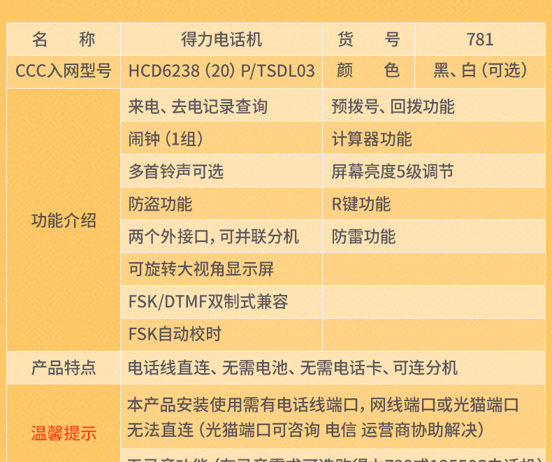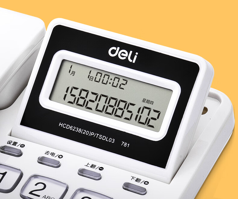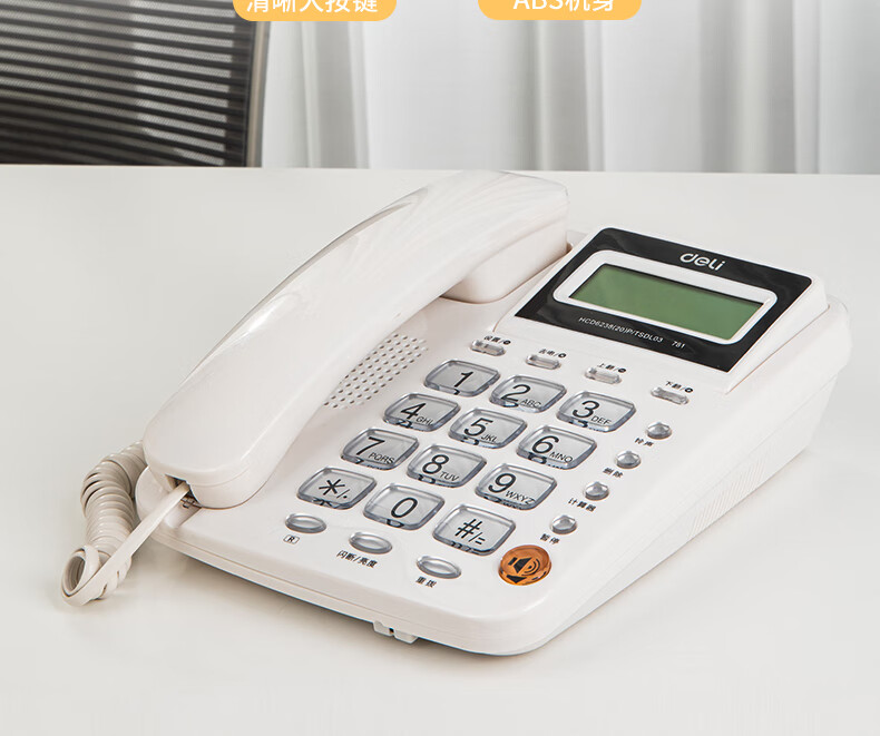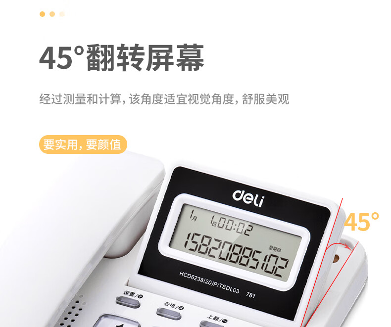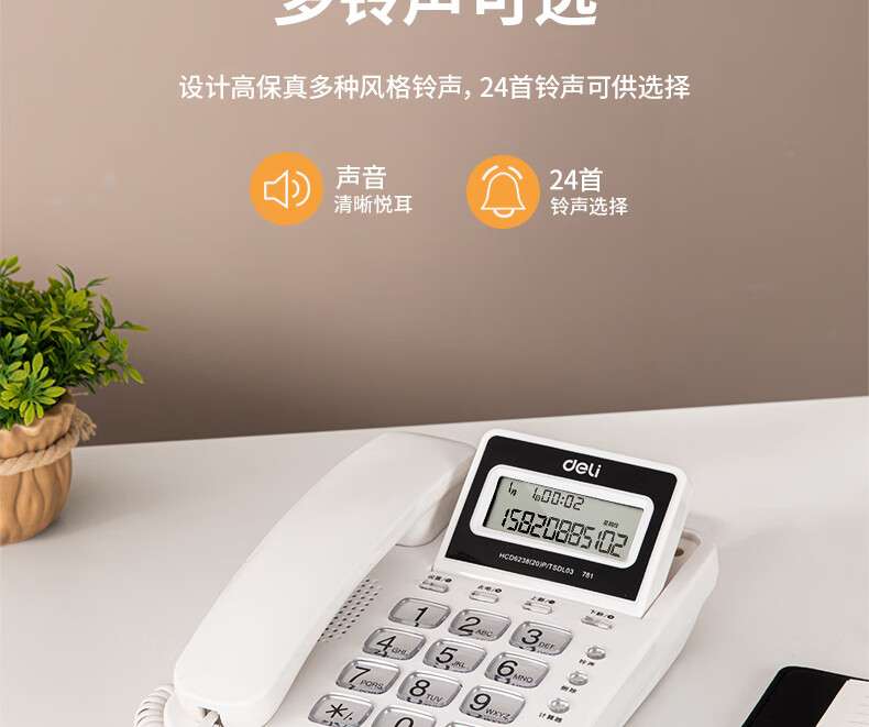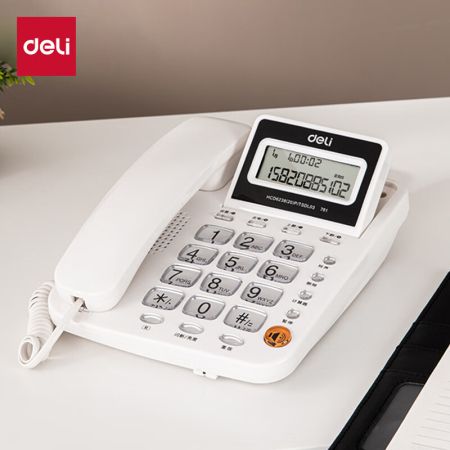 商品名稱:得力 電話機座機 固定電話 辦公家用 翻轉(zhuǎn)屏幕 免電池 781白