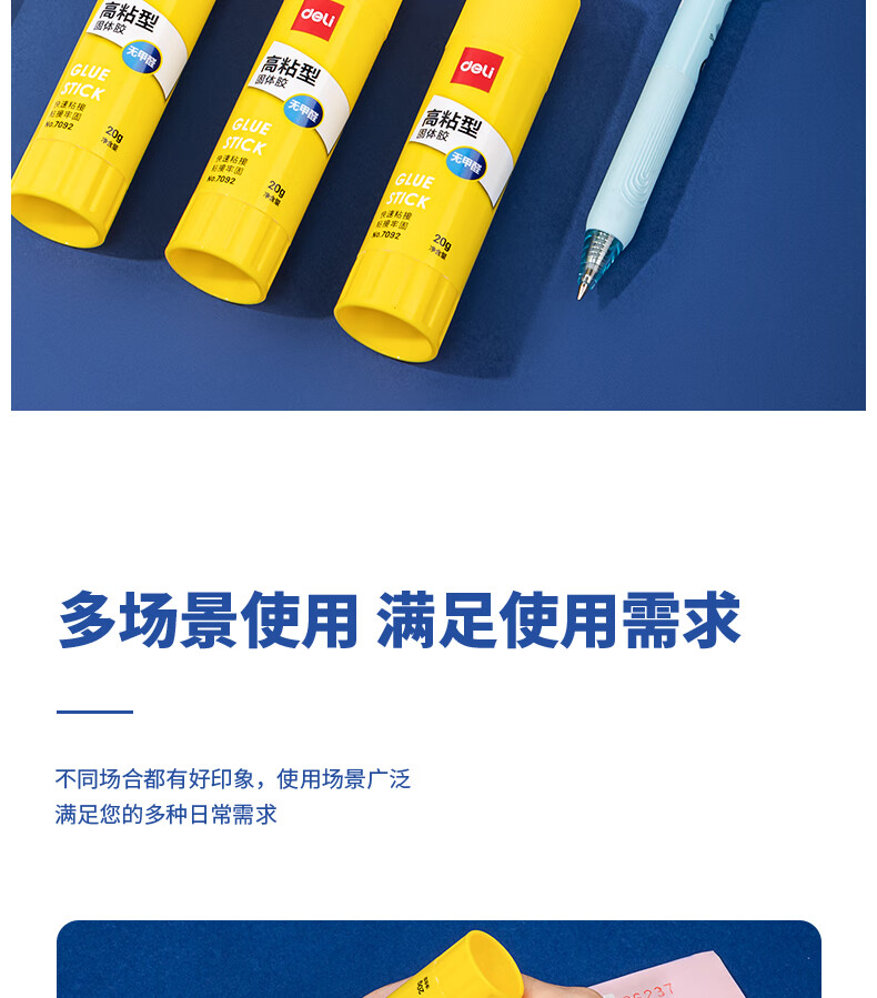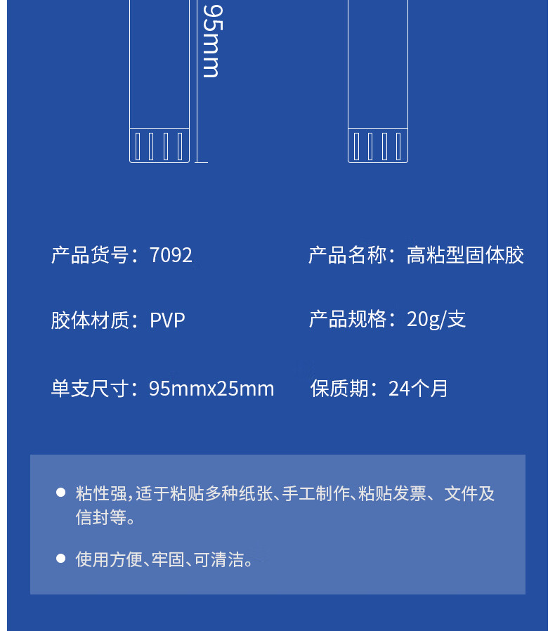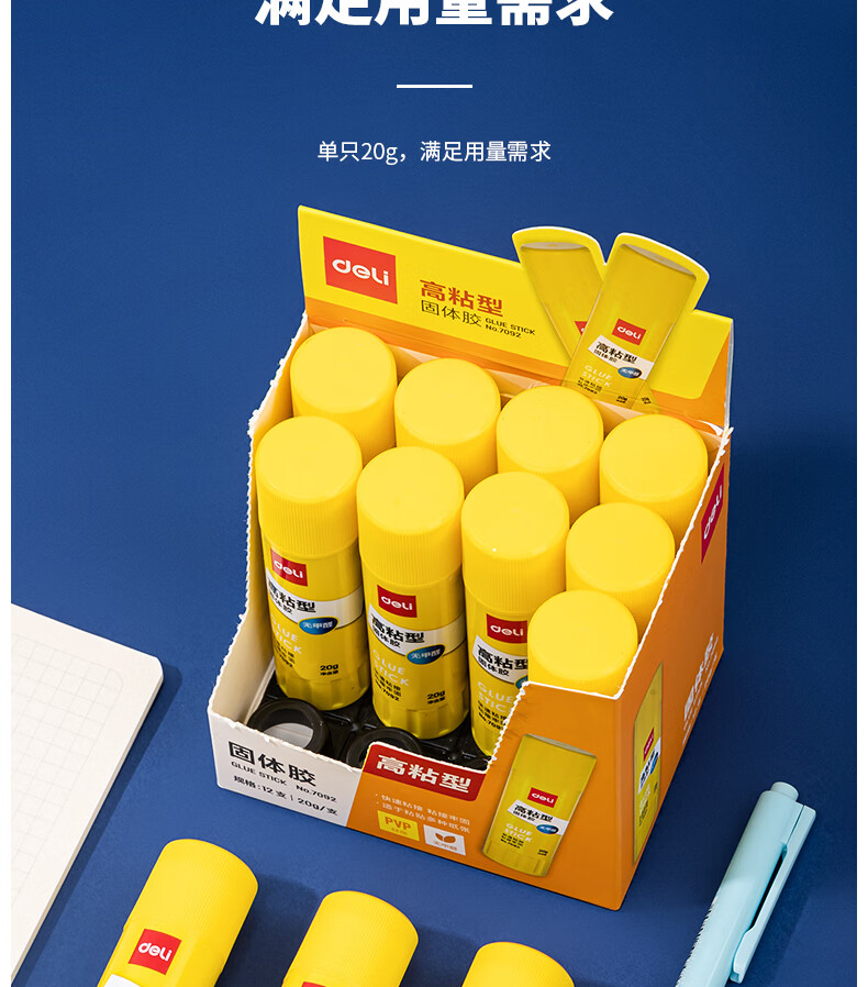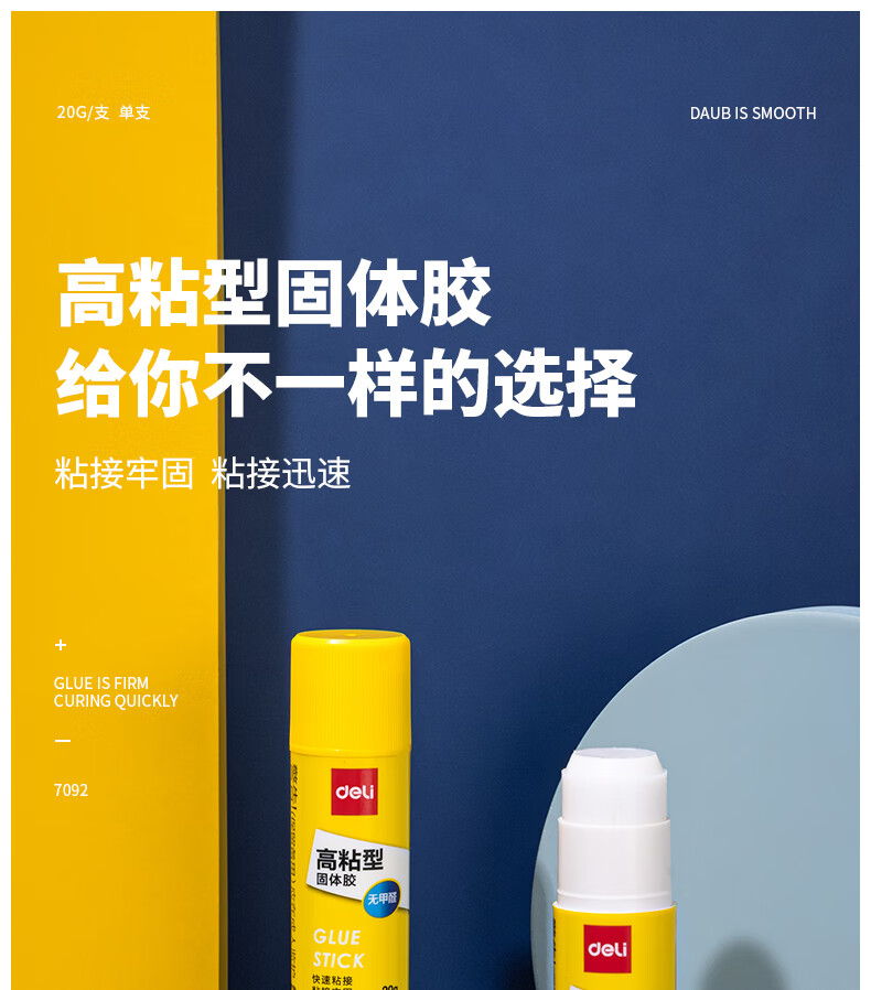 商品名稱:得力7092 固體膠水 20g高粘度PVP無(wú)甲醛快干耐用膠棒 單支裝 辦公用品