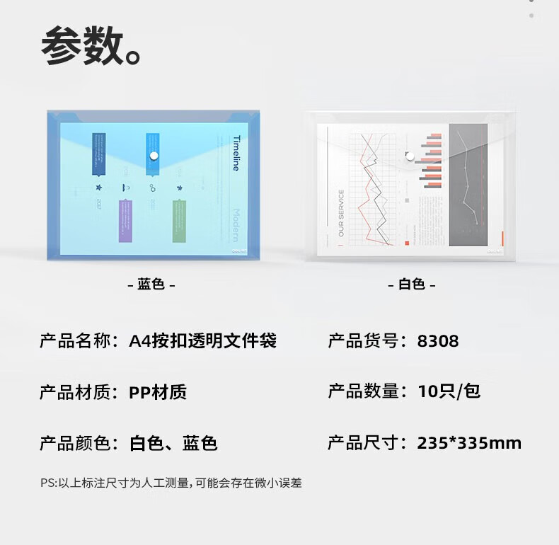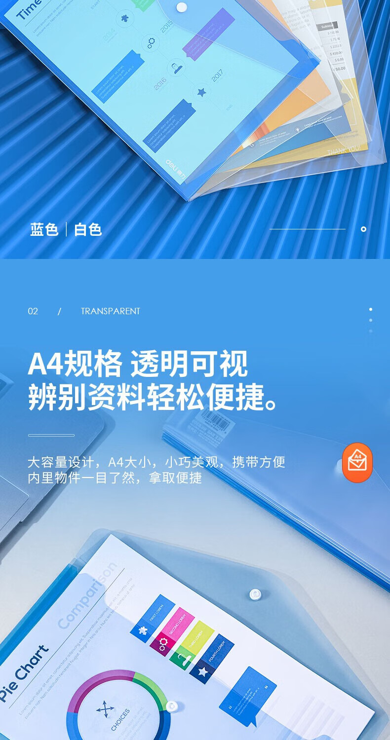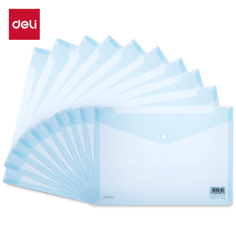 商品名稱:得力8308 透明文件袋 A4按扣資料袋 塑料檔案袋 文件保護(hù) 票據(jù)學(xué)生試卷收納袋 10只/包