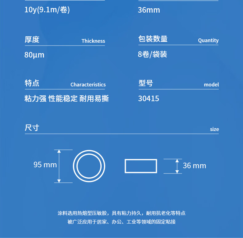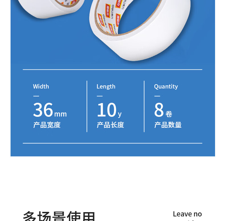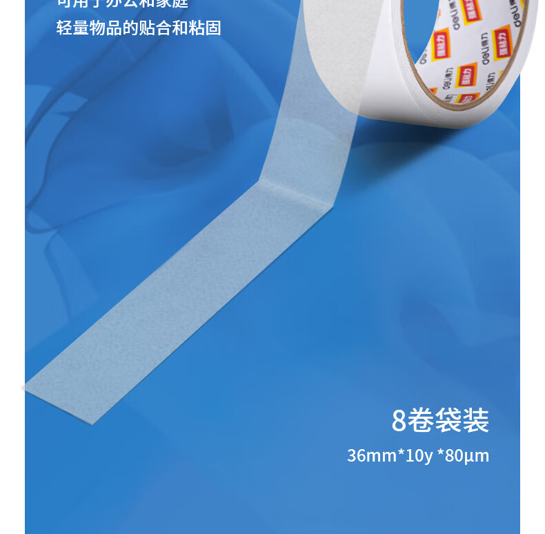 商品名稱:得力30415 高粘棉紙雙面膠帶 學(xué)生文具手工制作 36mm*10y(9.1m/卷) 白色 辦公用品 8卷/筒