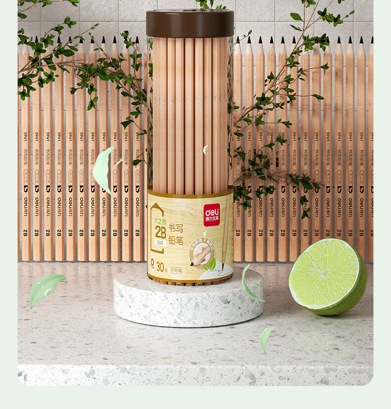 商品名稱:得力S941 鉛筆 木之然系列2B六角筆桿書寫繪畫素描鉛筆 30支/桶