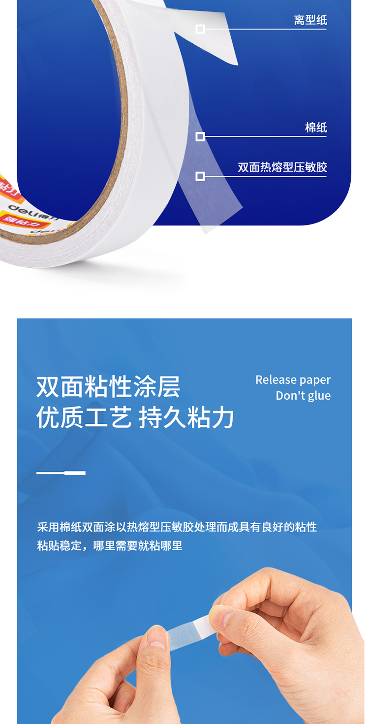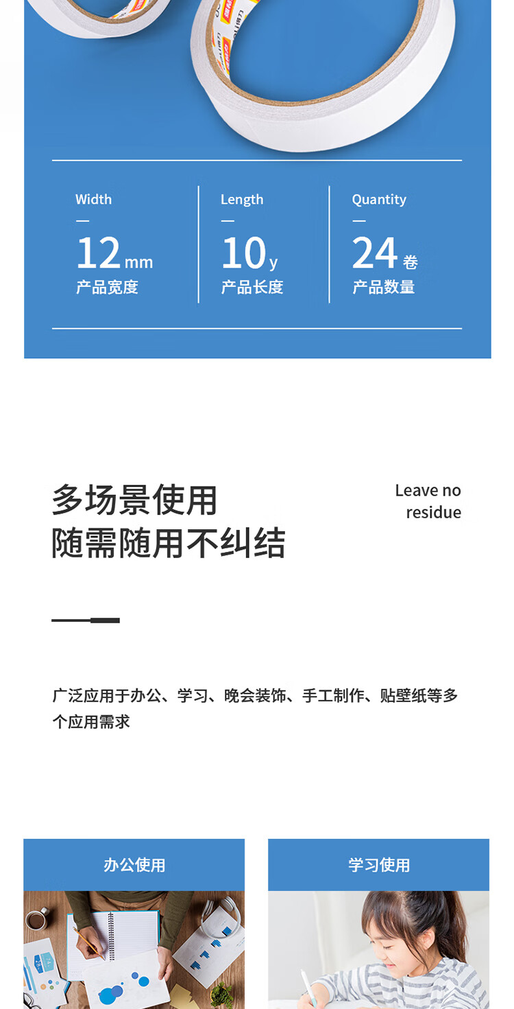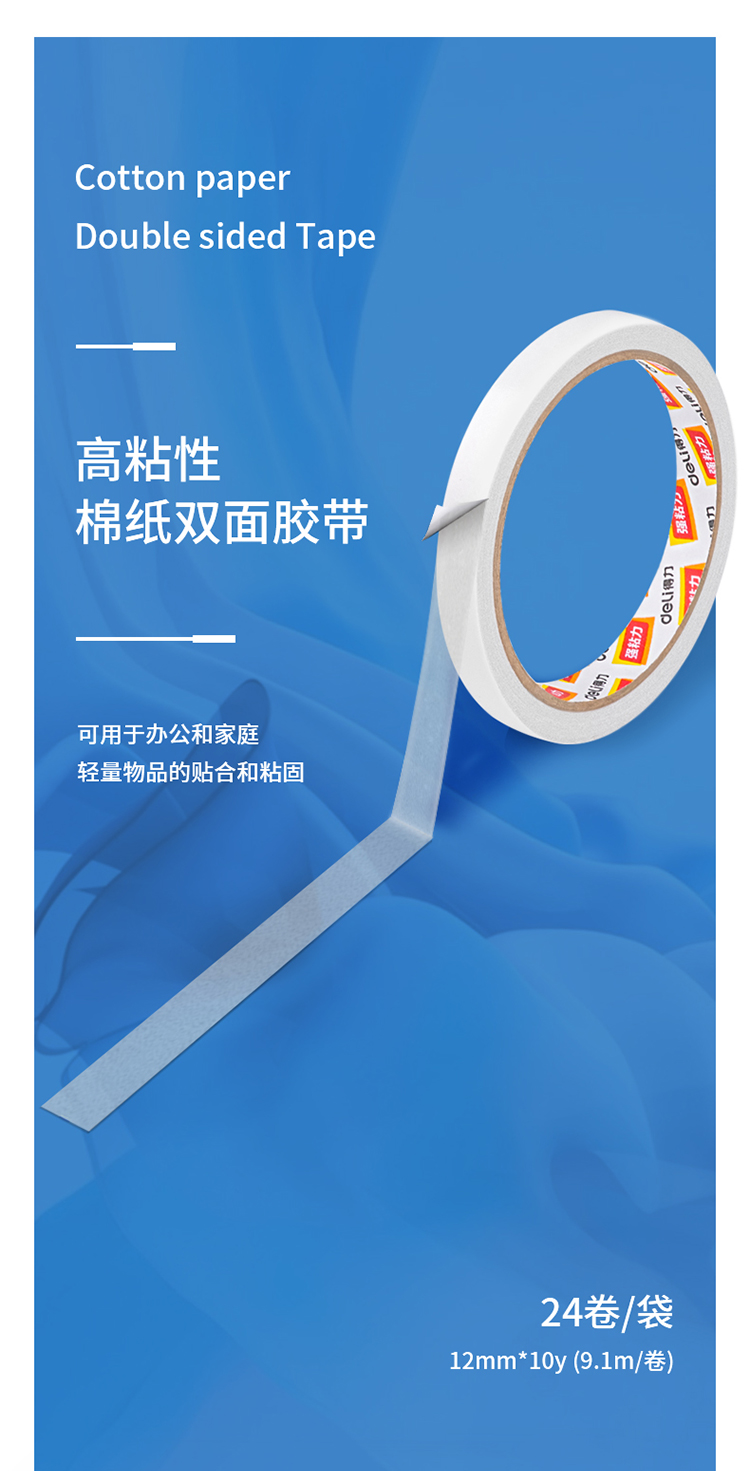 商品名稱:得力30401 高粘棉紙雙面膠帶 12mm*10y(9.1m/卷) 白色 24卷/袋