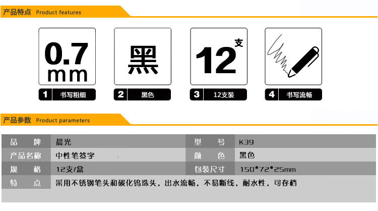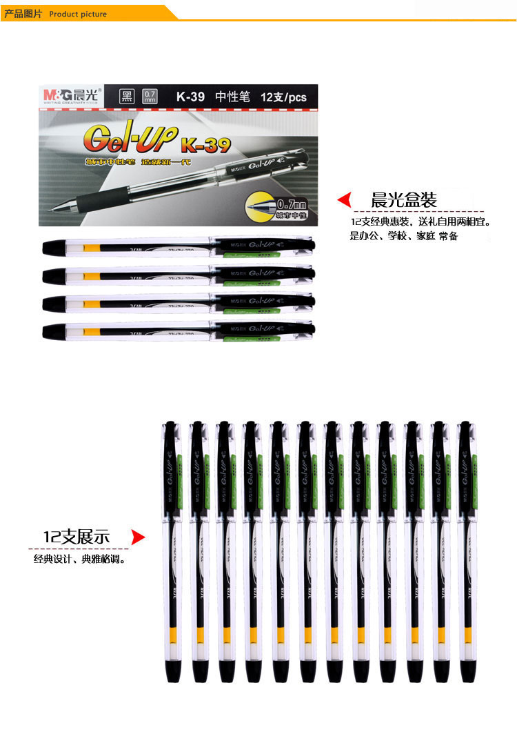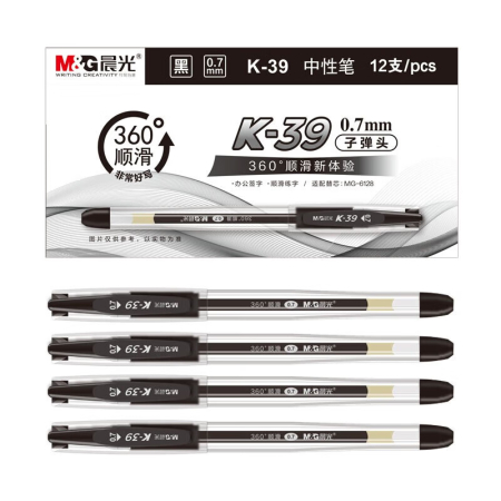 商品名稱:晨光K39 黑色中性筆 0.7mm經(jīng)典拔蓋子彈頭簽字筆 辦公水筆 12支/盒