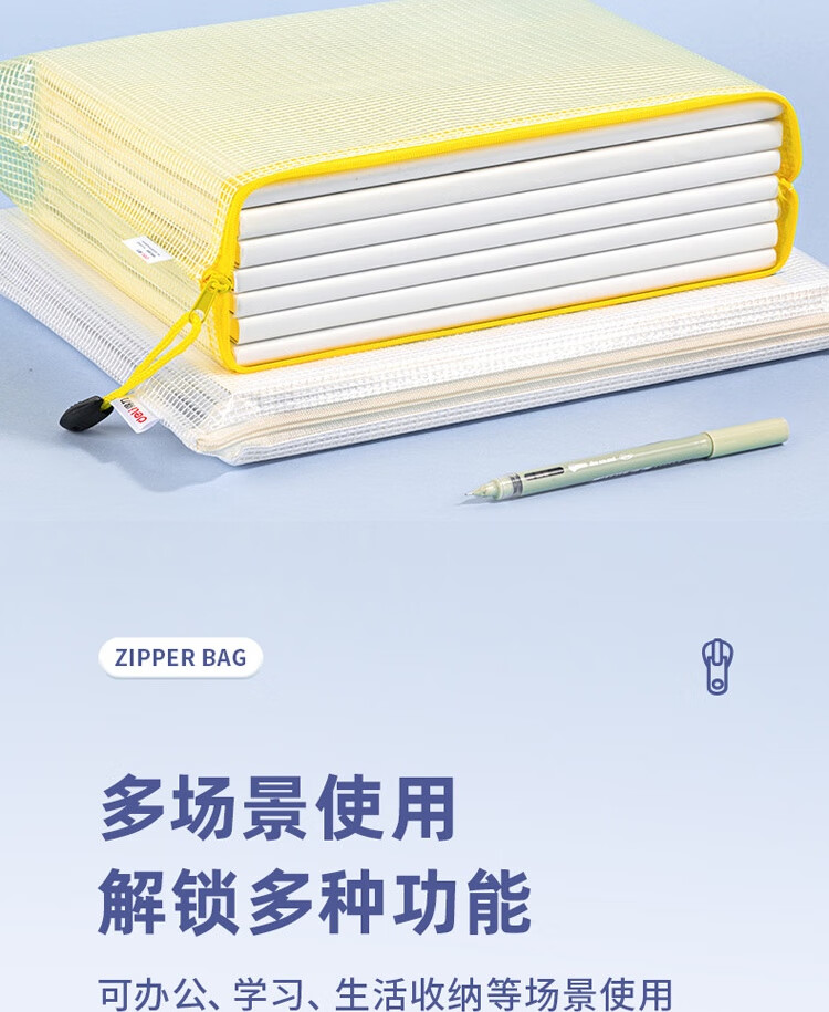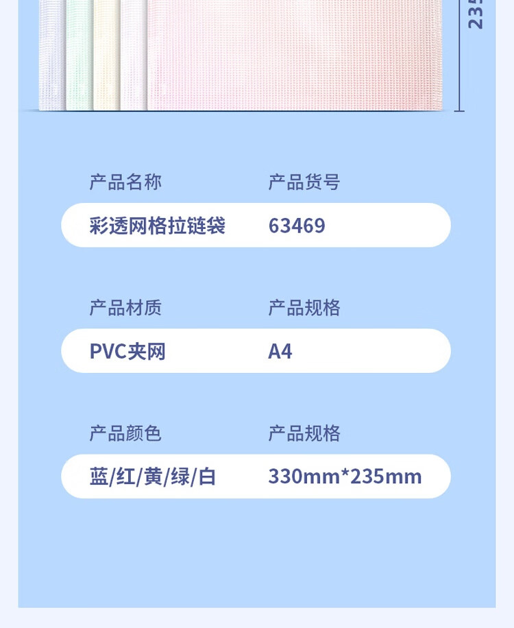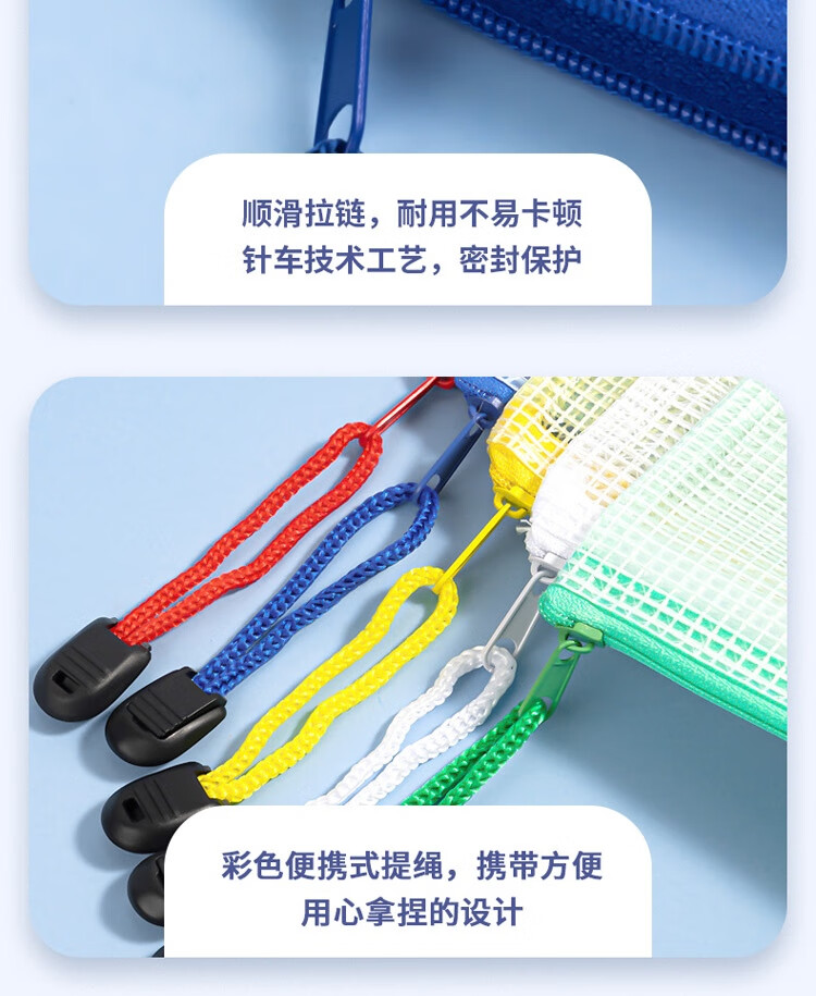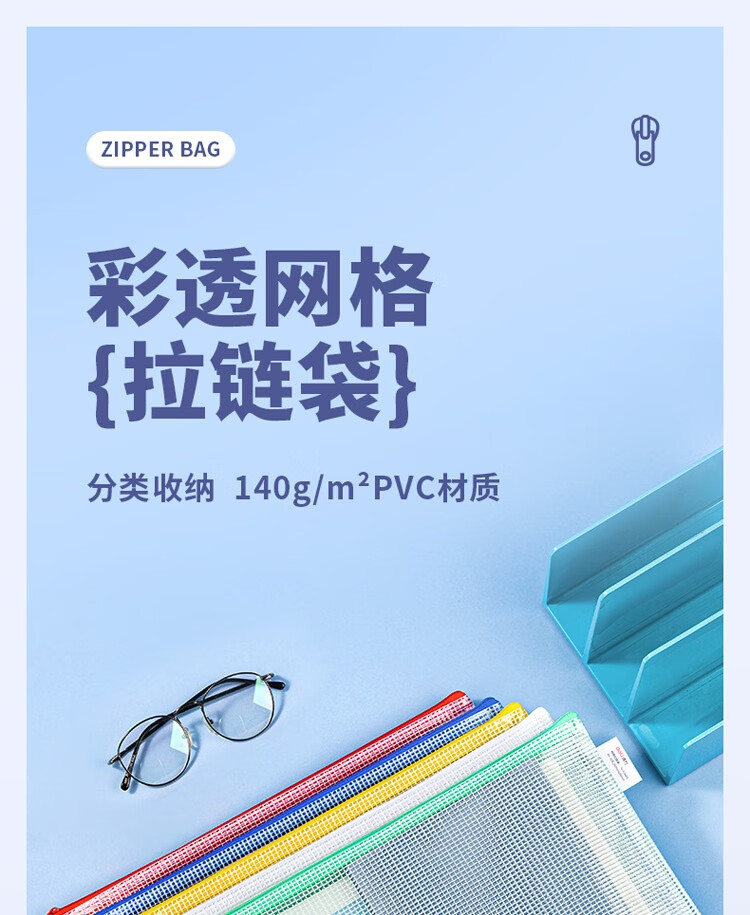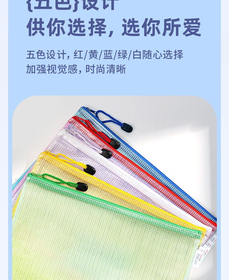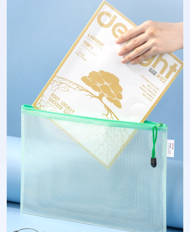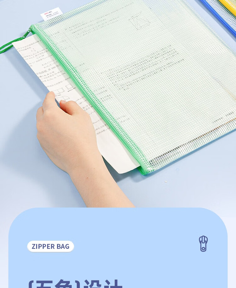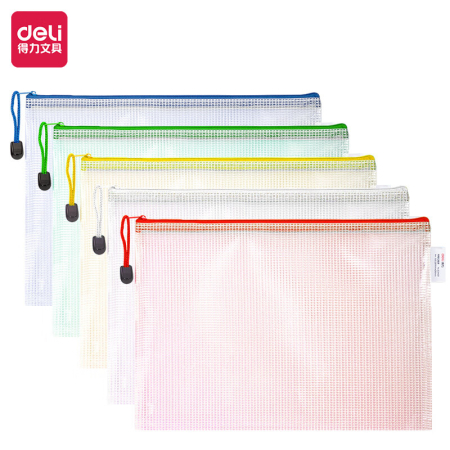商品名稱:得力63469 網(wǎng)格拉鏈袋 A4透明資料分類袋 科目分類袋試卷文具袋 顏色隨機 單個裝