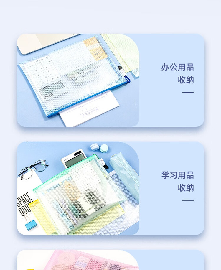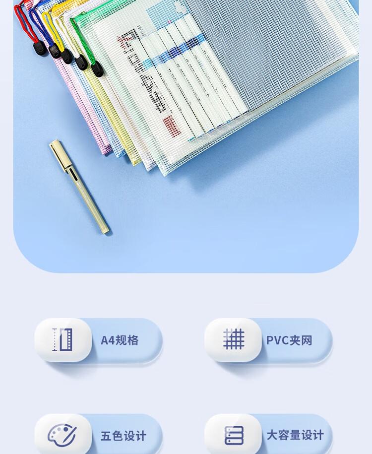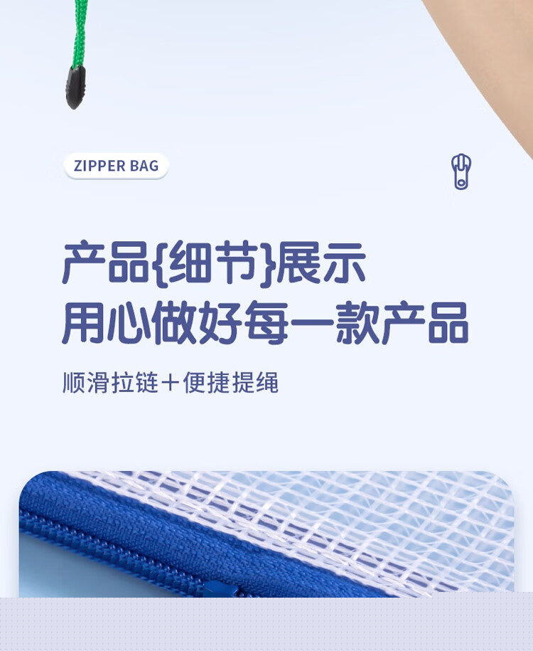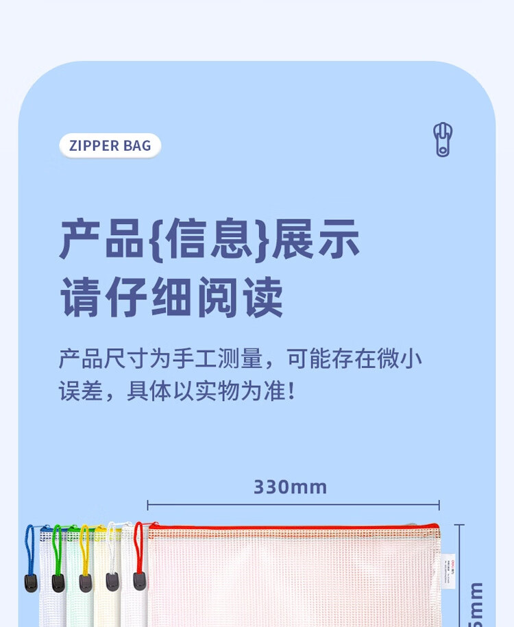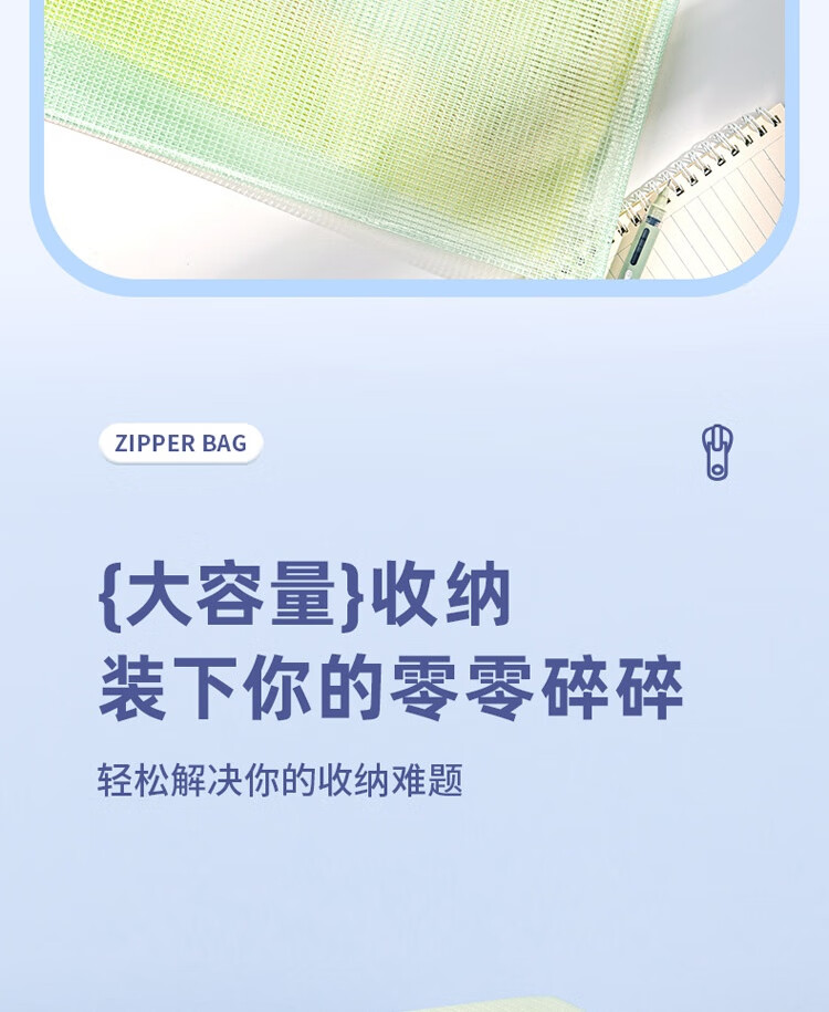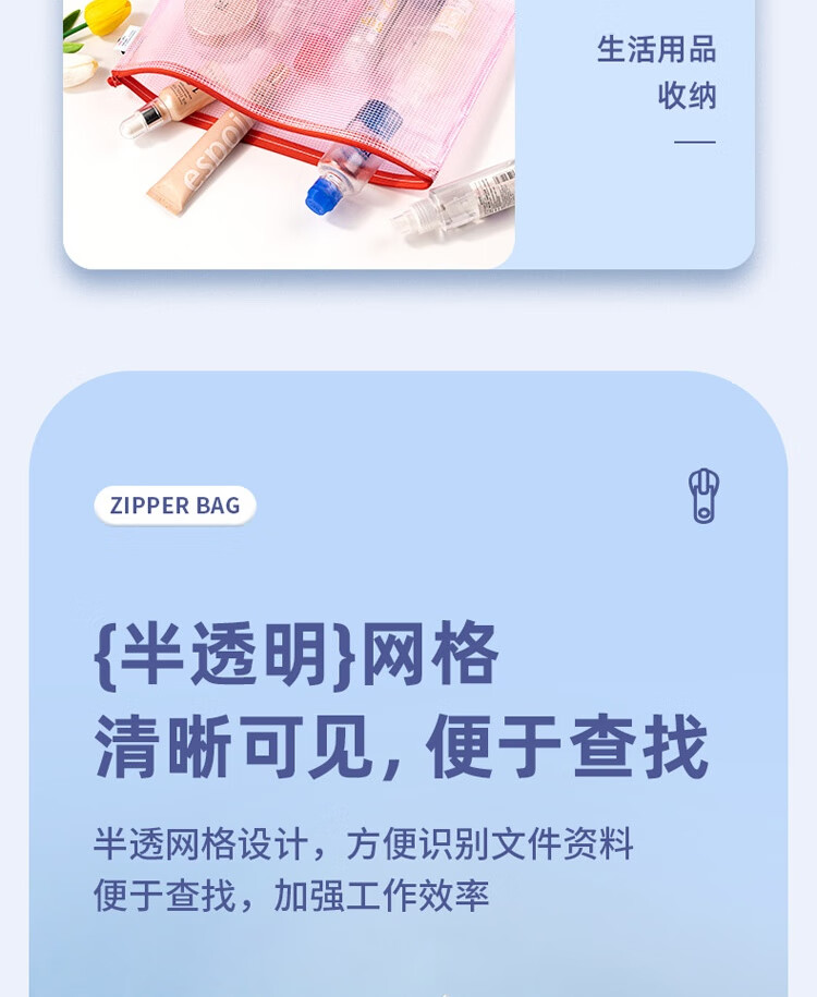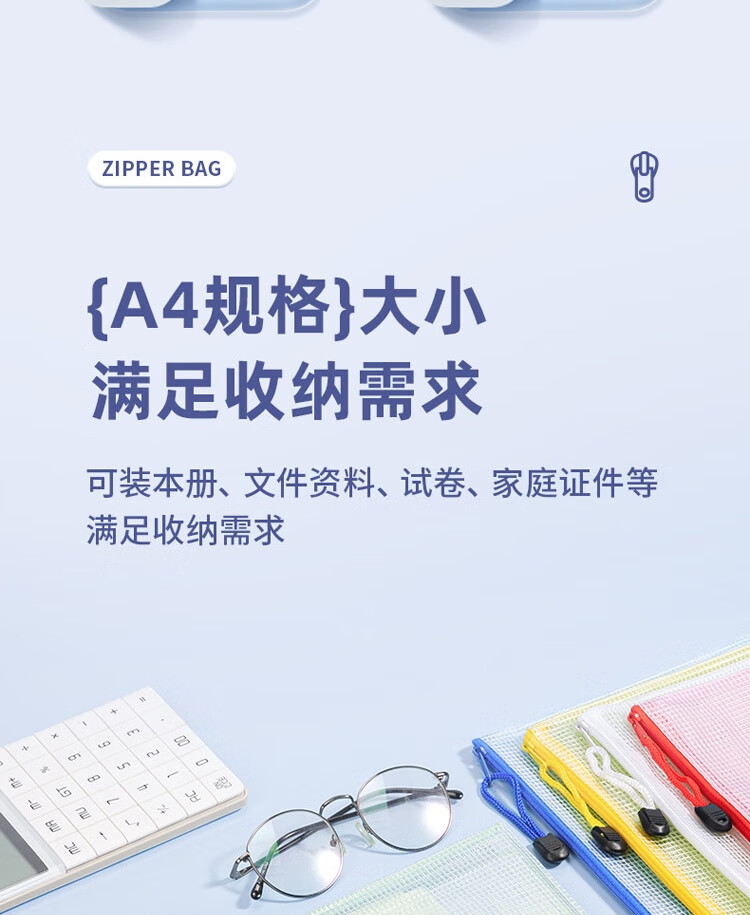 商品名稱:得力63469 網(wǎng)格拉鏈袋 A4透明資料分類袋 科目分類袋試卷文具袋 顏色隨機 單個裝