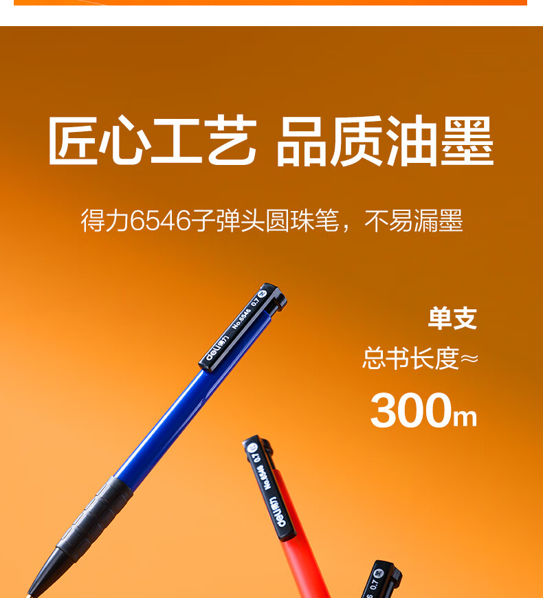 商品名稱:得力6546 圓珠筆 中油筆 0.7mm子彈頭軟膠握手原子筆按動(dòng)筆 辦公用品 36支/盒