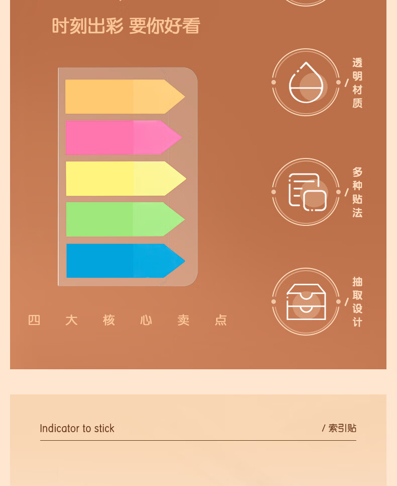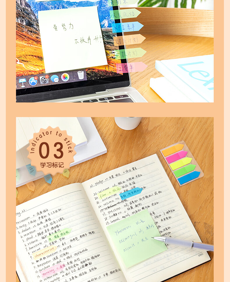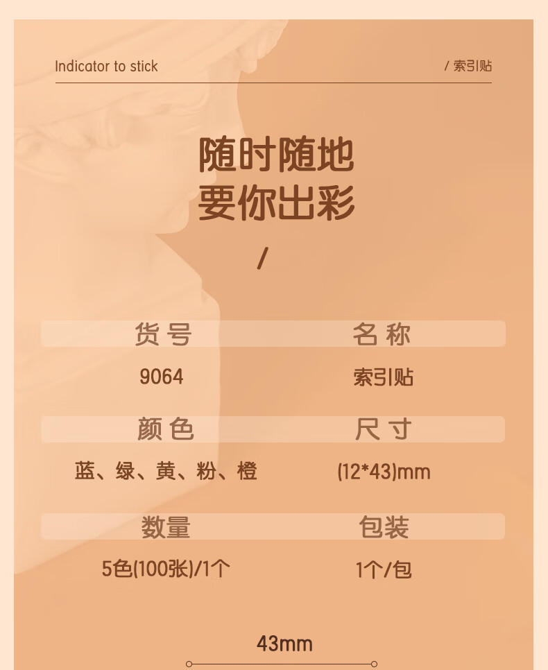 商品名稱:得力9064 箭頭指示標(biāo)簽貼 5色熒光膜分類索引便利貼記事貼43*12mm 100張/包