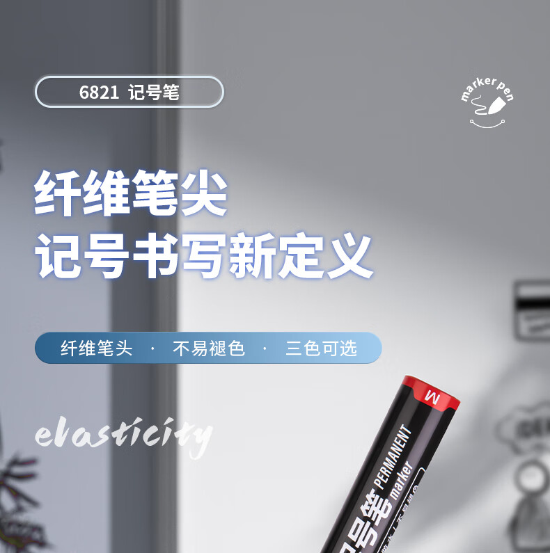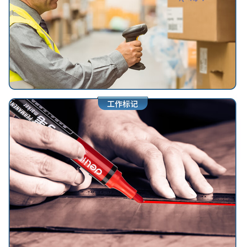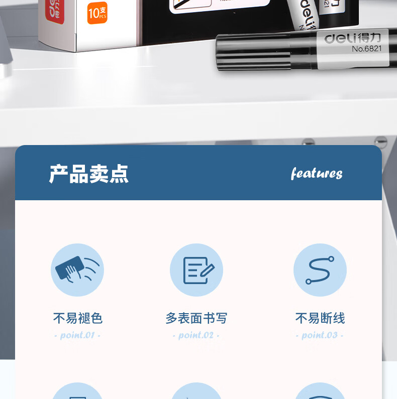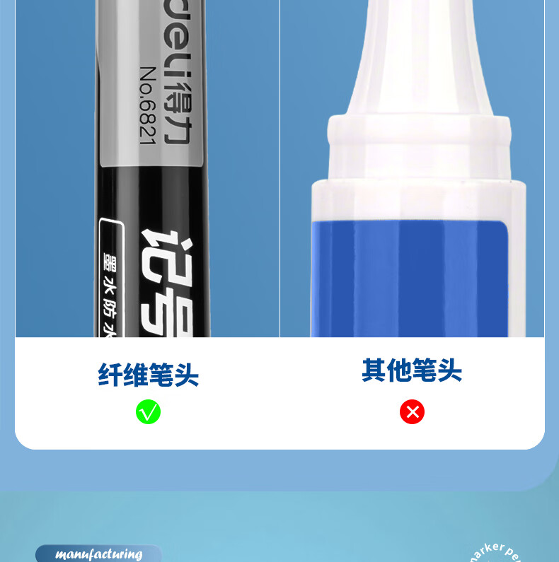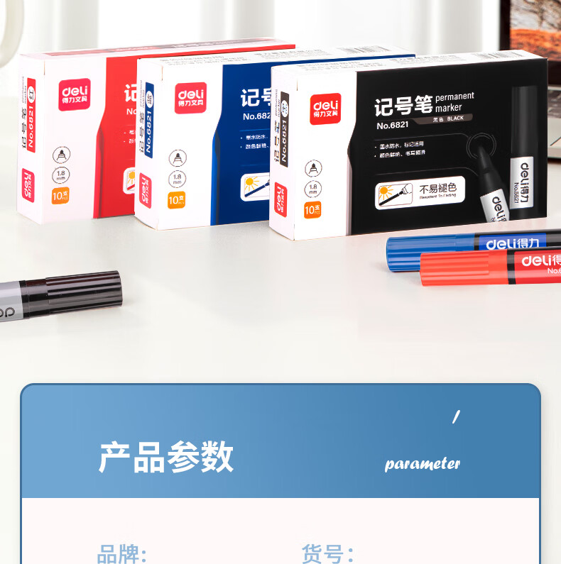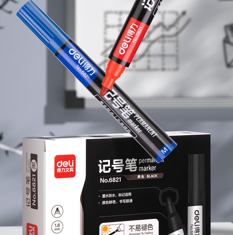 商品名稱:得力6821 油性記號筆 物流黑色大頭筆 粗頭簽名筆馬克筆 10支/盒