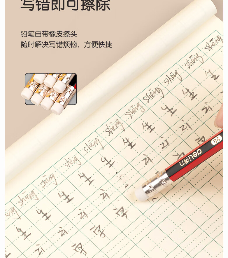 商品名稱:得力S936 鉛筆 2B高級鉛筆(紅色)(12支/盒)
