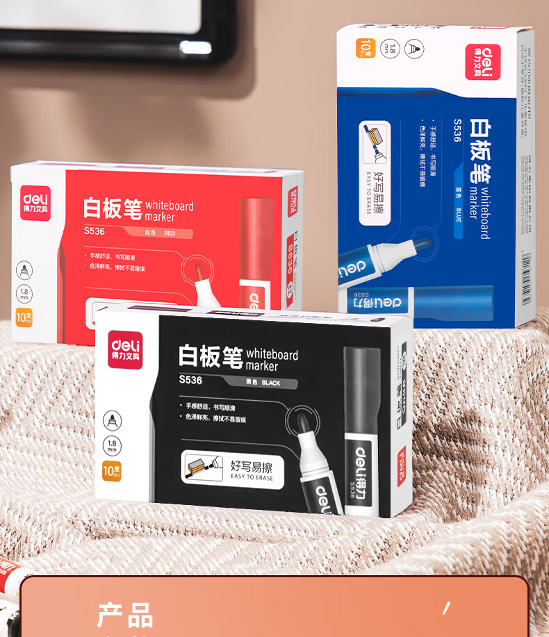 商品名稱:得力S536 白板筆 可擦易擦?xí)鴮戫樆?10支/盒