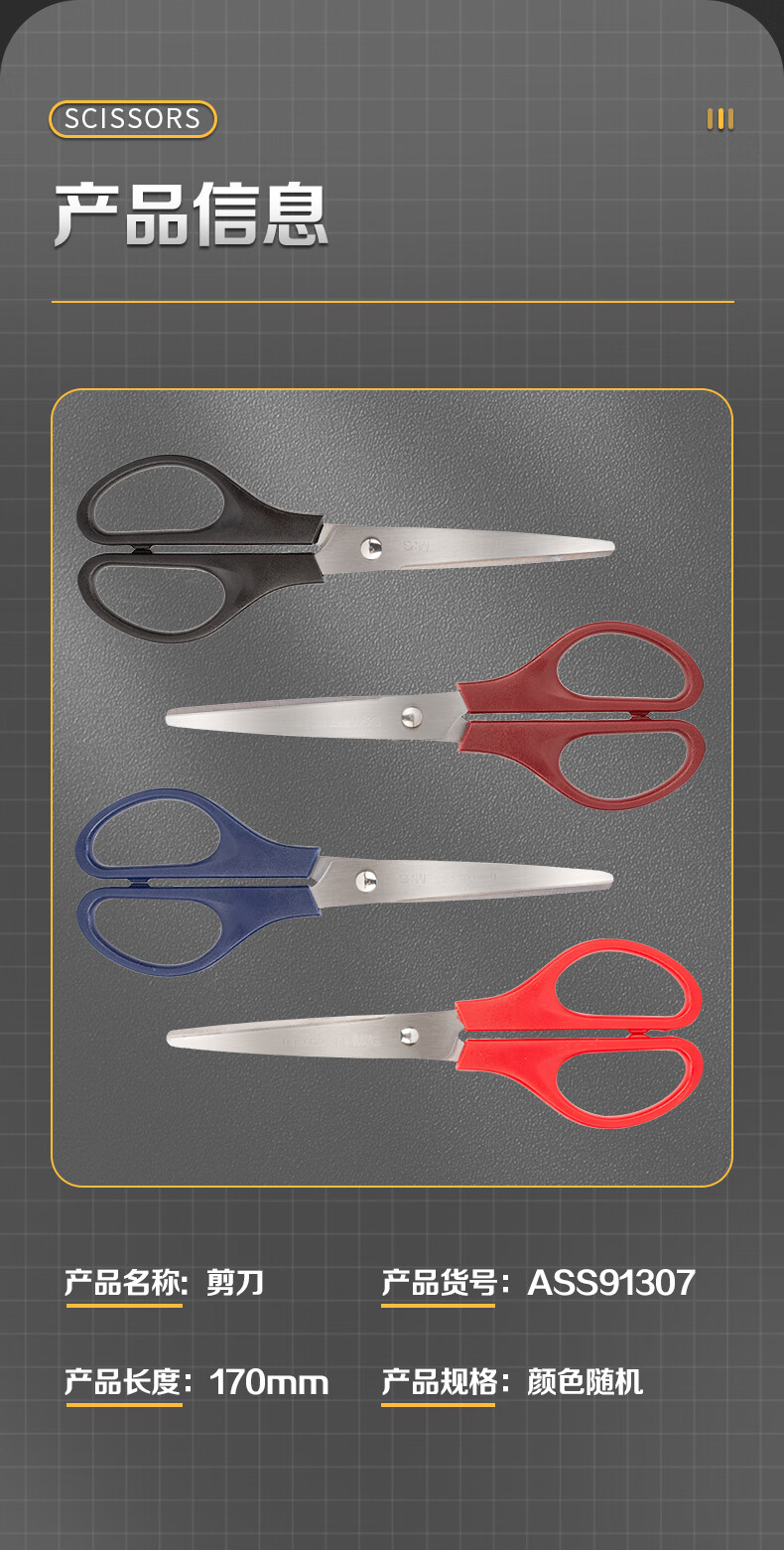 商品名稱:晨光ASS91307 剪刀 170mm中號手工剪紙刀 辦公用品 單把裝 顏色隨機