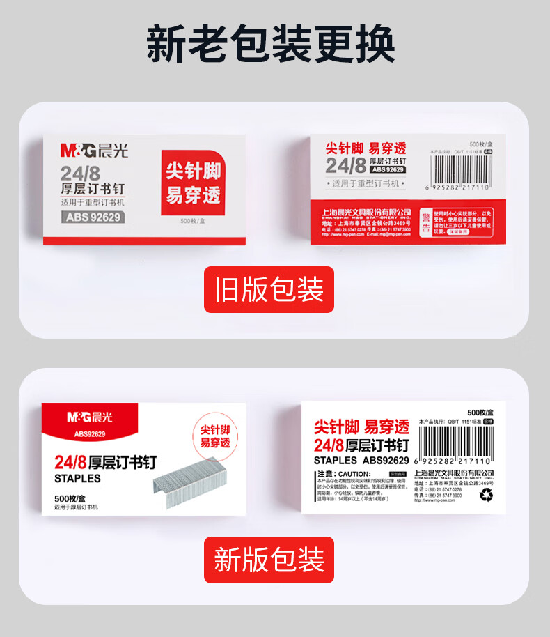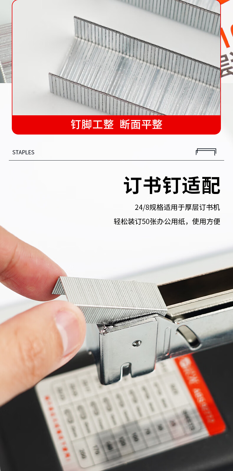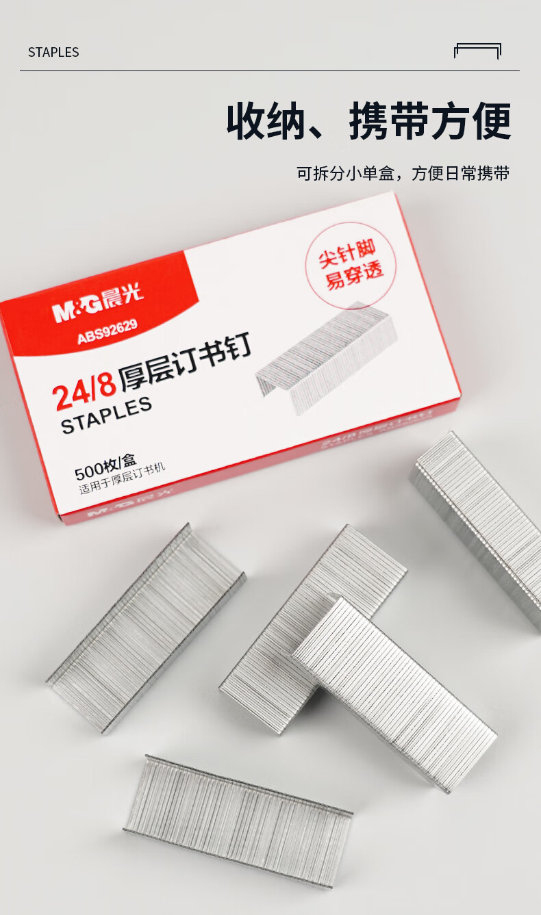 商品名稱:晨光ABS92629 訂書釘 24/8號(hào)厚層易穿透訂書針 辦公用品 500枚/盒 單盒裝