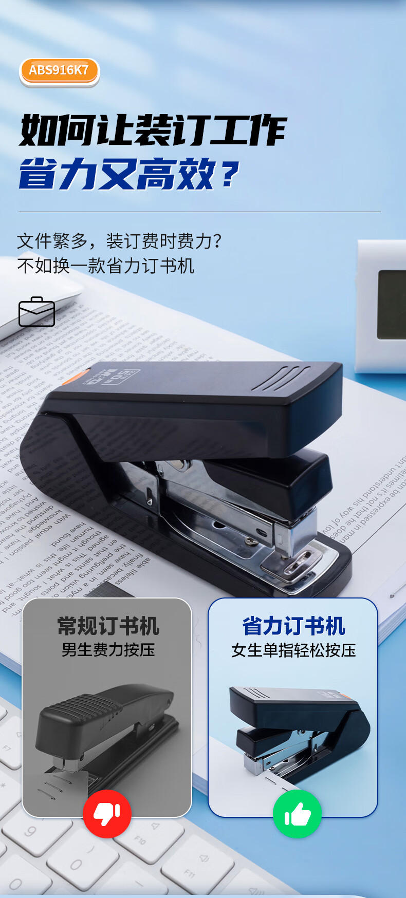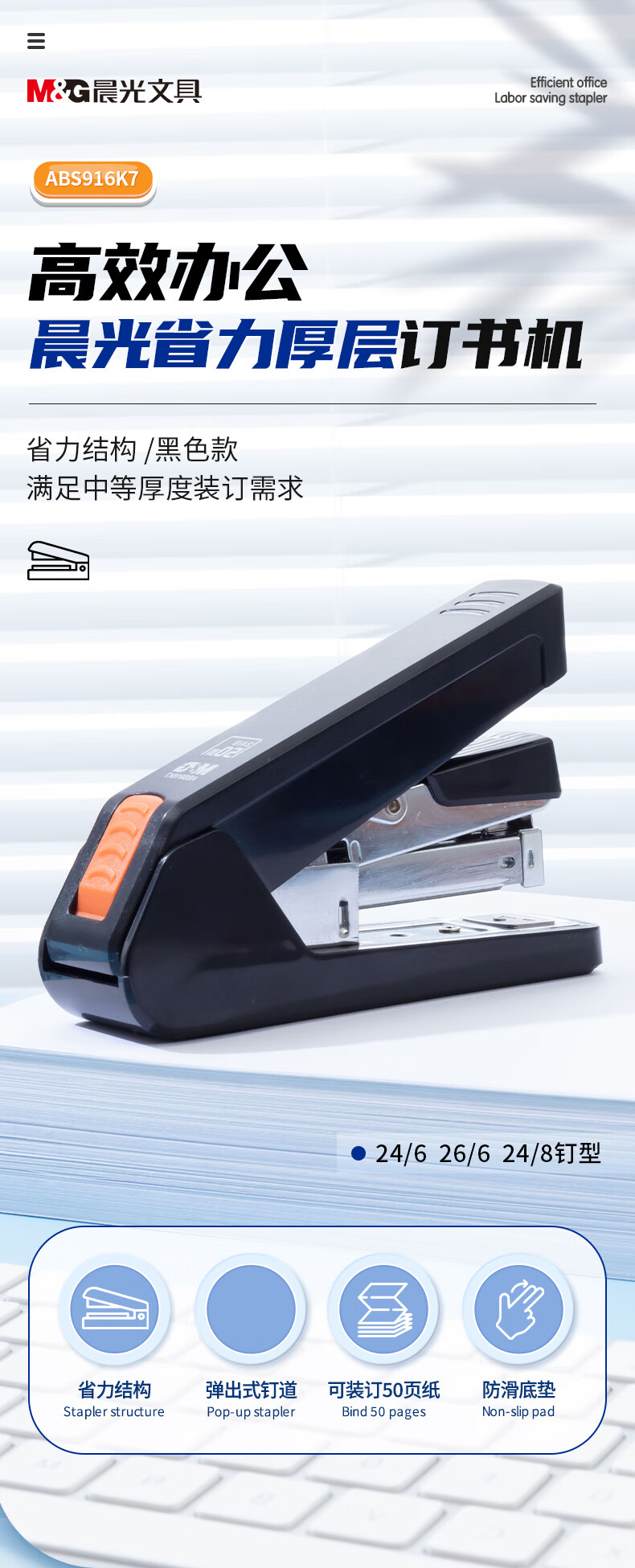 商品名稱:晨光ABS916K7 12#厚層訂書機 商務型省力訂書器 單個裝