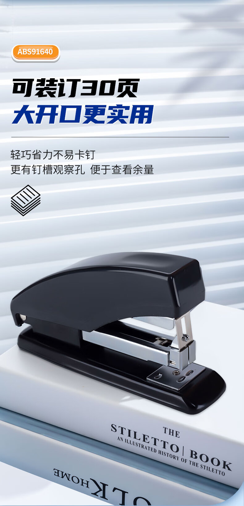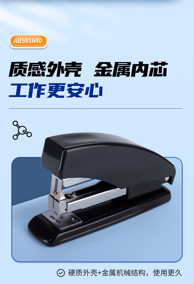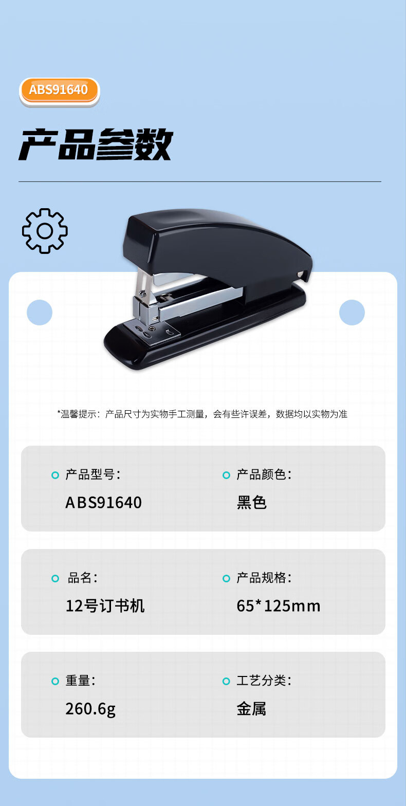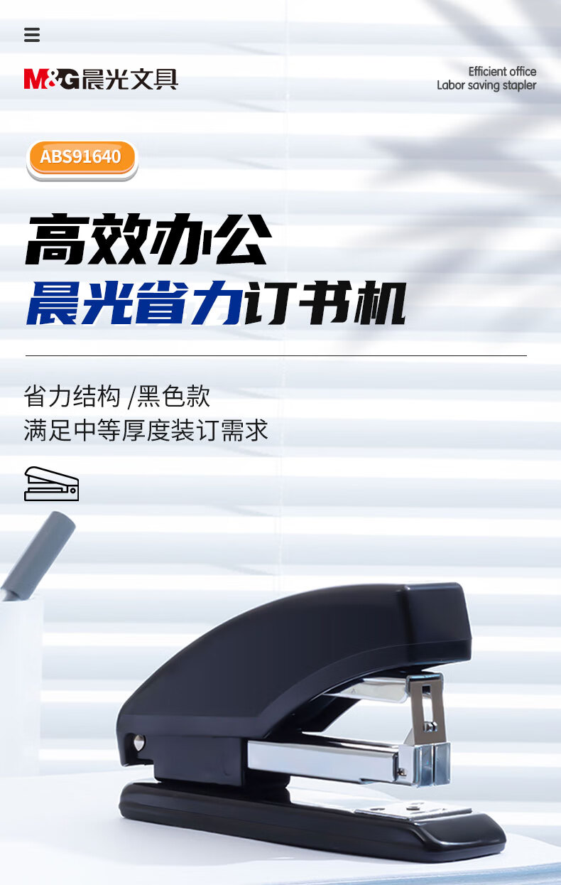 商品名稱:晨光ABS91640 訂書(shū)機(jī) 12#商務(wù)型省力型訂書(shū)器 辦公用品 黑色 單個(gè)裝