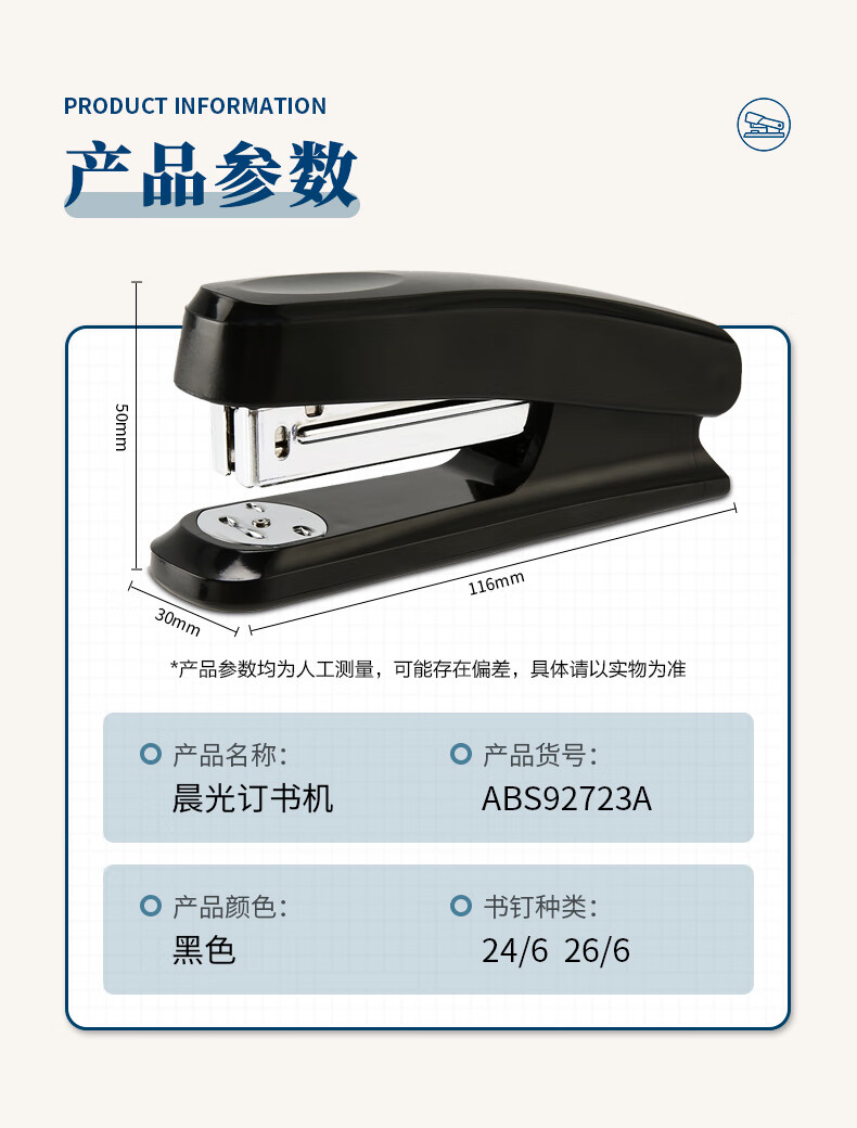 商品名稱:晨光ABS92723 12#訂書機 耐用便攜訂書器 辦公用品 單個裝