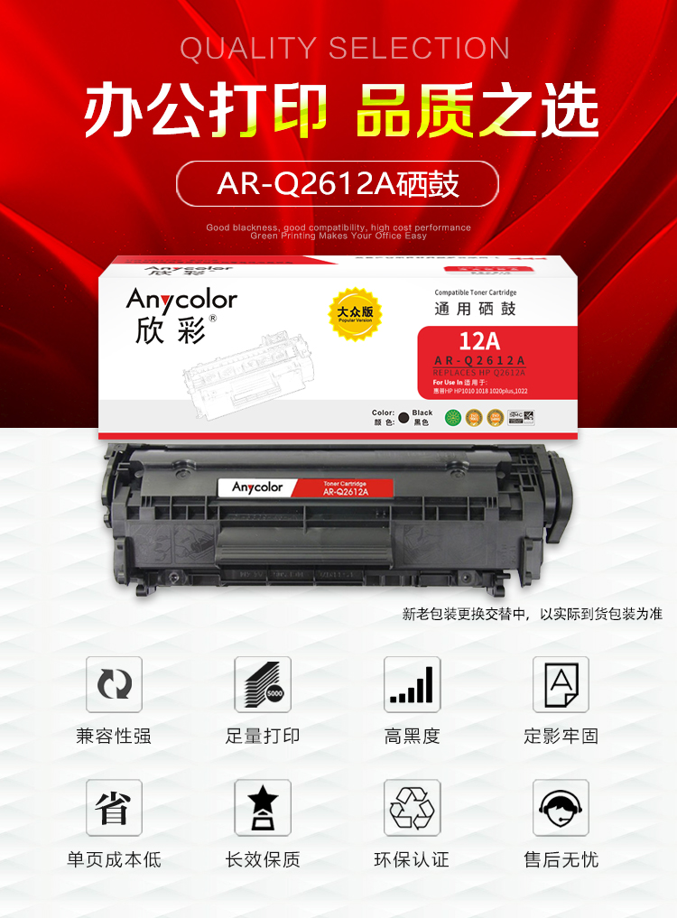 商品名稱:欣彩AR-Q2612A硒鼓 大眾版 適用惠普HP Q2612A 12A 1010 1012 1015 1018 1020 1022 1022N 1022NW激光打印機(jī)