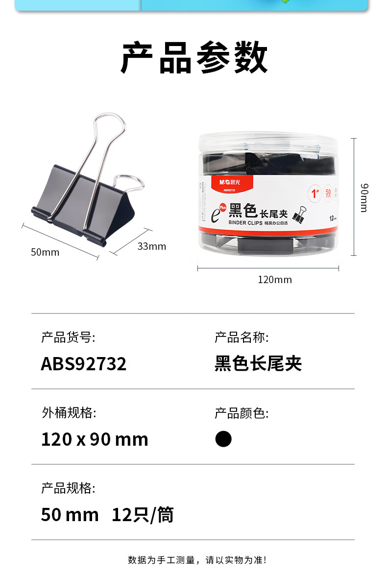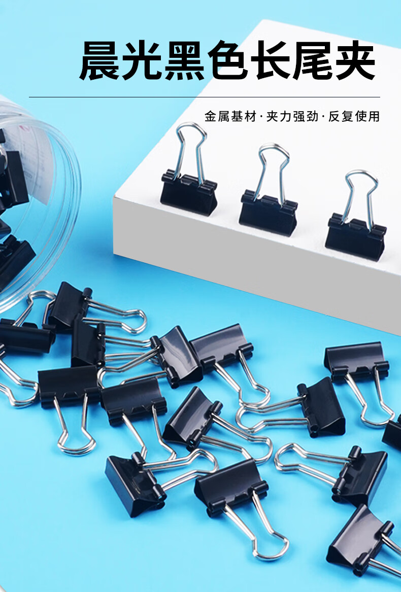 商品名稱:晨光ABS92732 黑色長(zhǎng)尾夾 1#50mm大號(hào)金屬票據(jù)夾 Eplus系列辦公燕尾夾 12只/筒