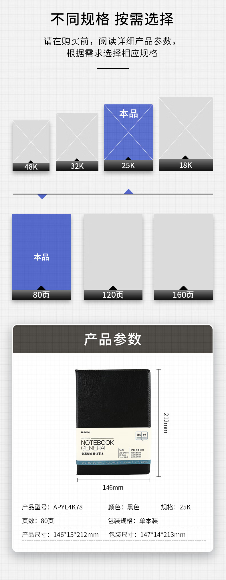 商品名稱:晨光APYE4K78 筆記本 25K/80張黑色會議記錄皮面本 商務記事本子 單本裝