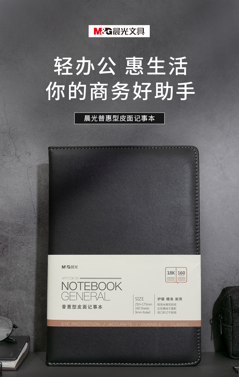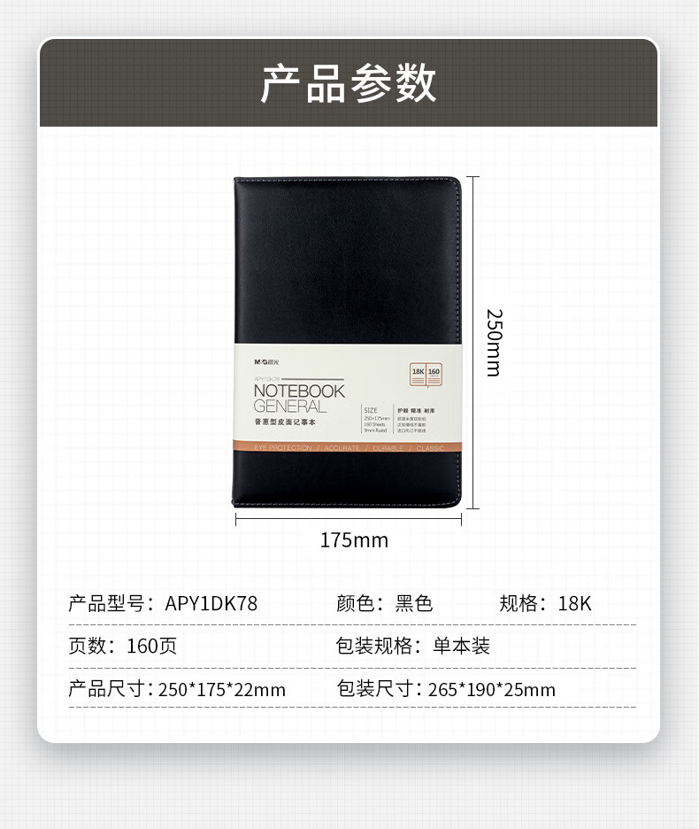 商品名稱:晨光APY1DK78 皮面本 B5/18K會(huì)議記錄筆記本 160張黑色普惠型記事本 單本裝