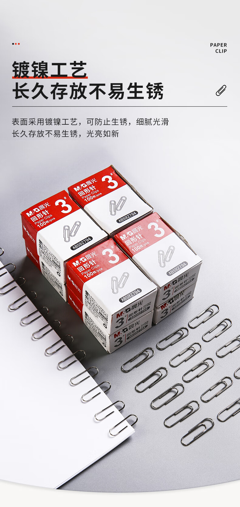 商品名稱:晨光ABS92794 鍍鎳回形針 3#金屬防銹曲別針 辦公用品 100枚/盒 10盒裝