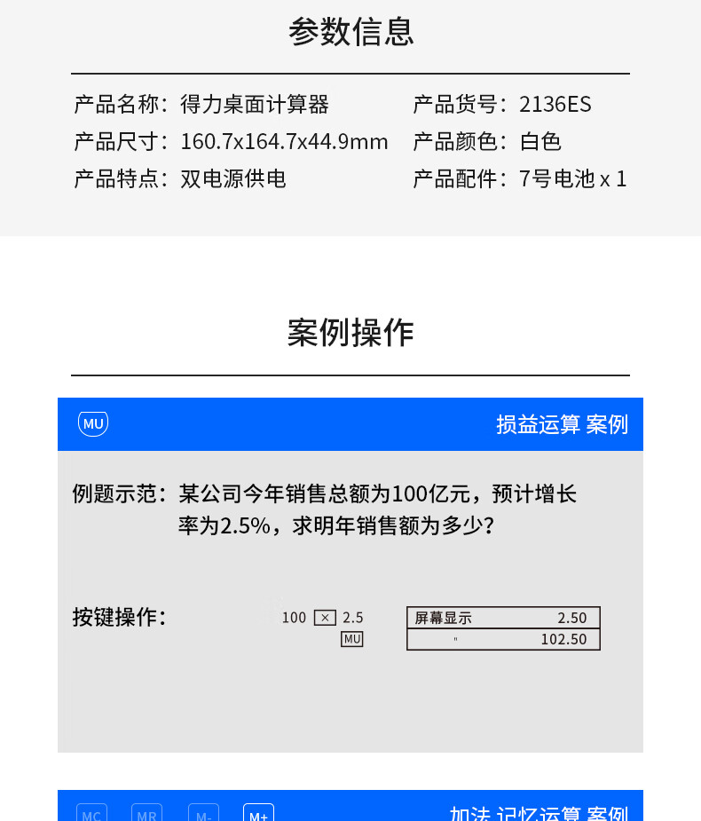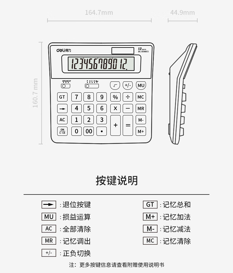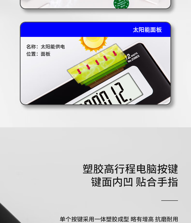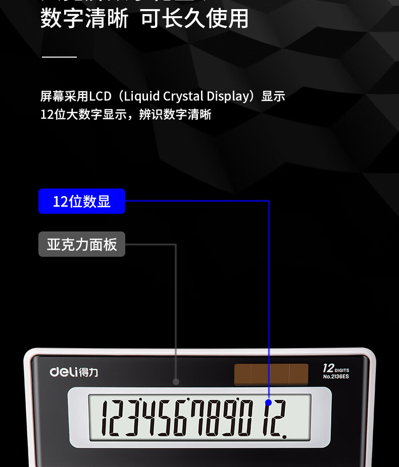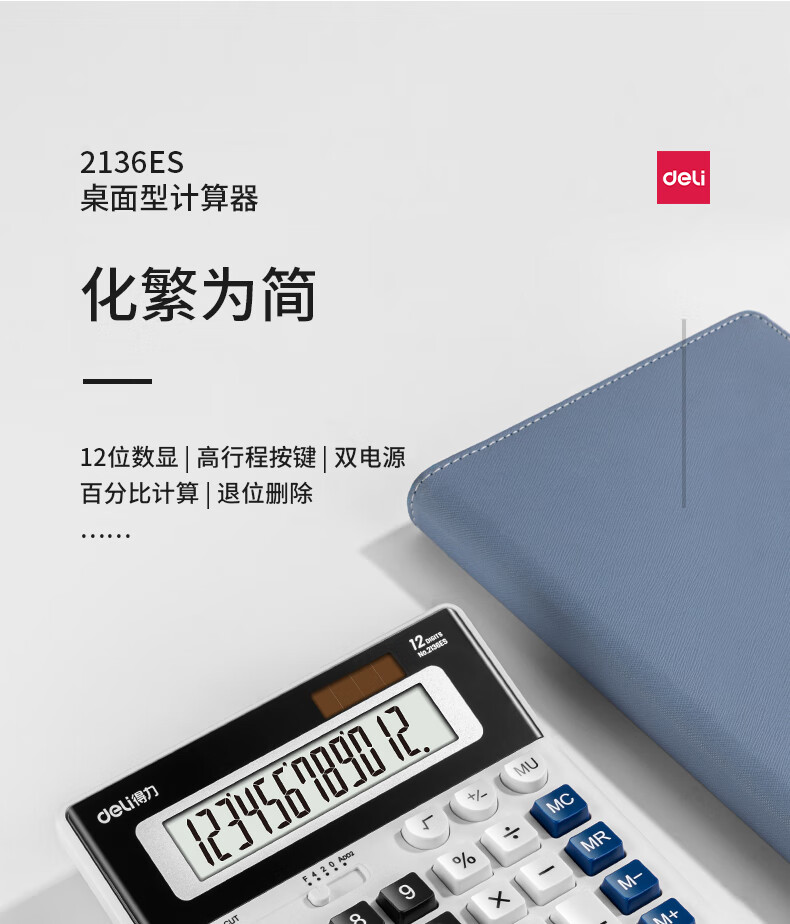 商品名稱:得力2136ES 雙電源電腦按鍵計算器 12位大屏大號計算機 單個裝
