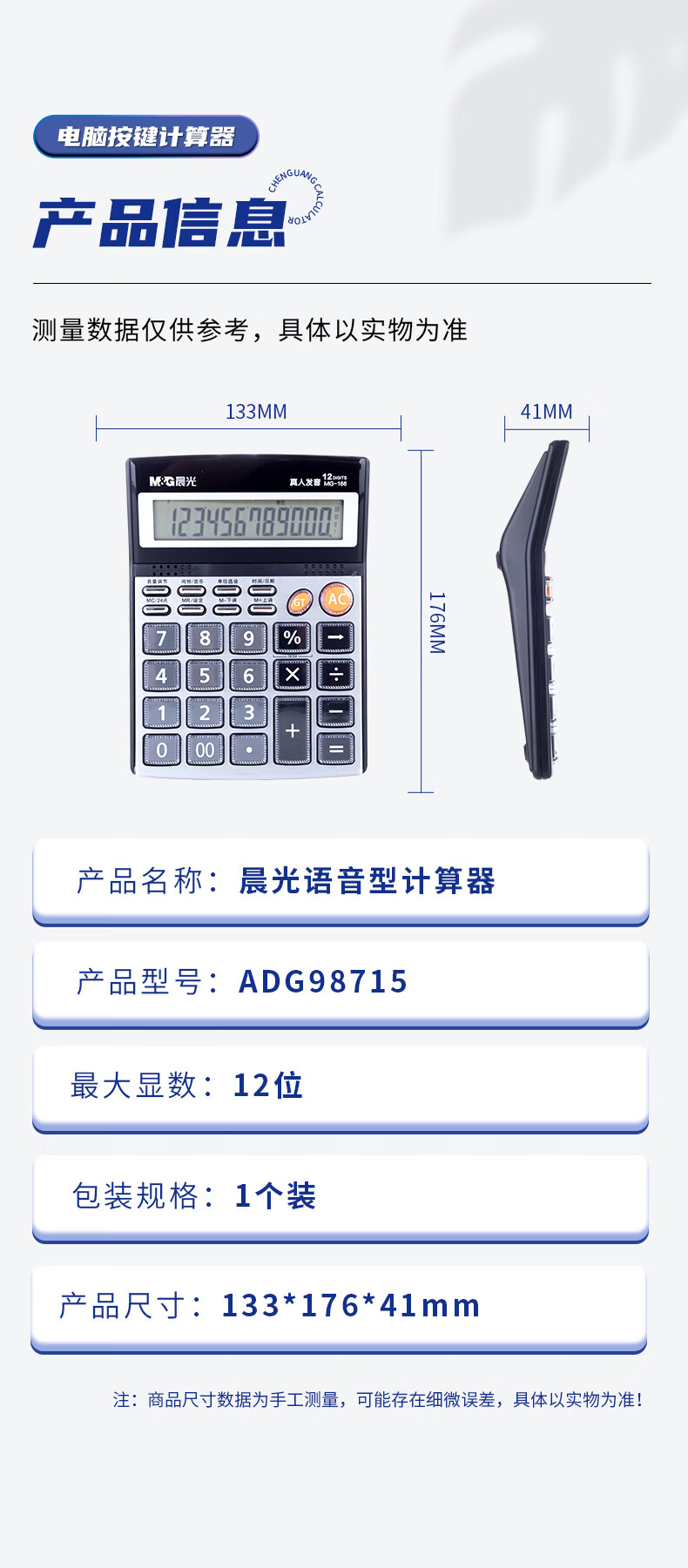 商品名稱:晨光ADG98715 大屏金屬面板真人語音計算器 12位顯示大屏幕桌面計算機(jī) 單個裝