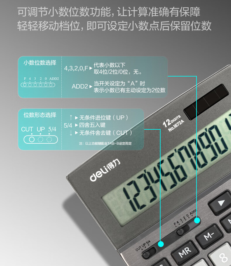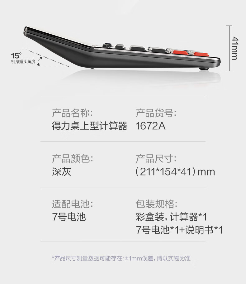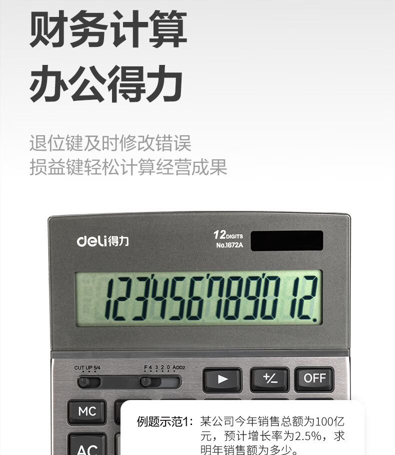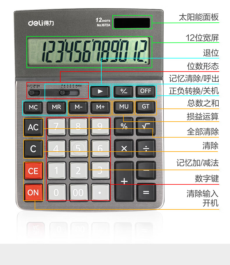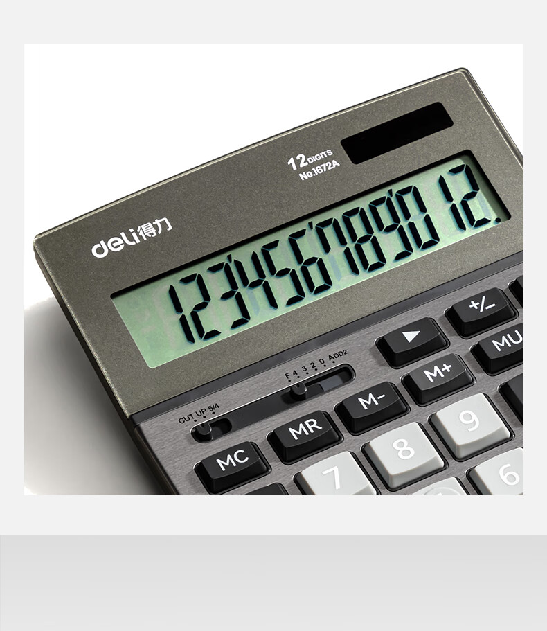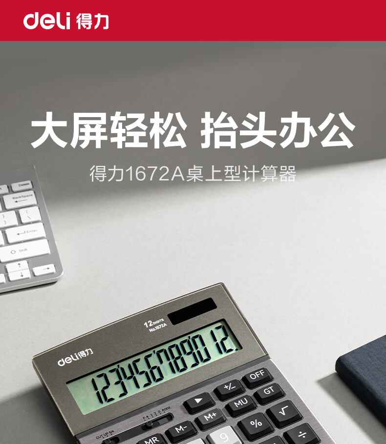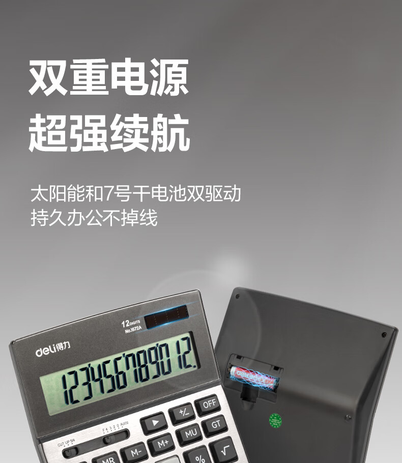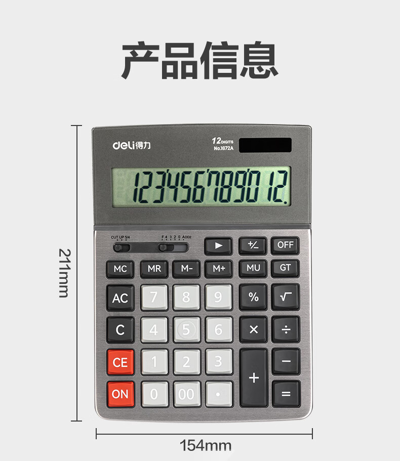 商品名稱:得力1672A 雙電源計算器 商務(wù)金屬面板12位大屏塑膠按鍵桌面計算機 單個裝