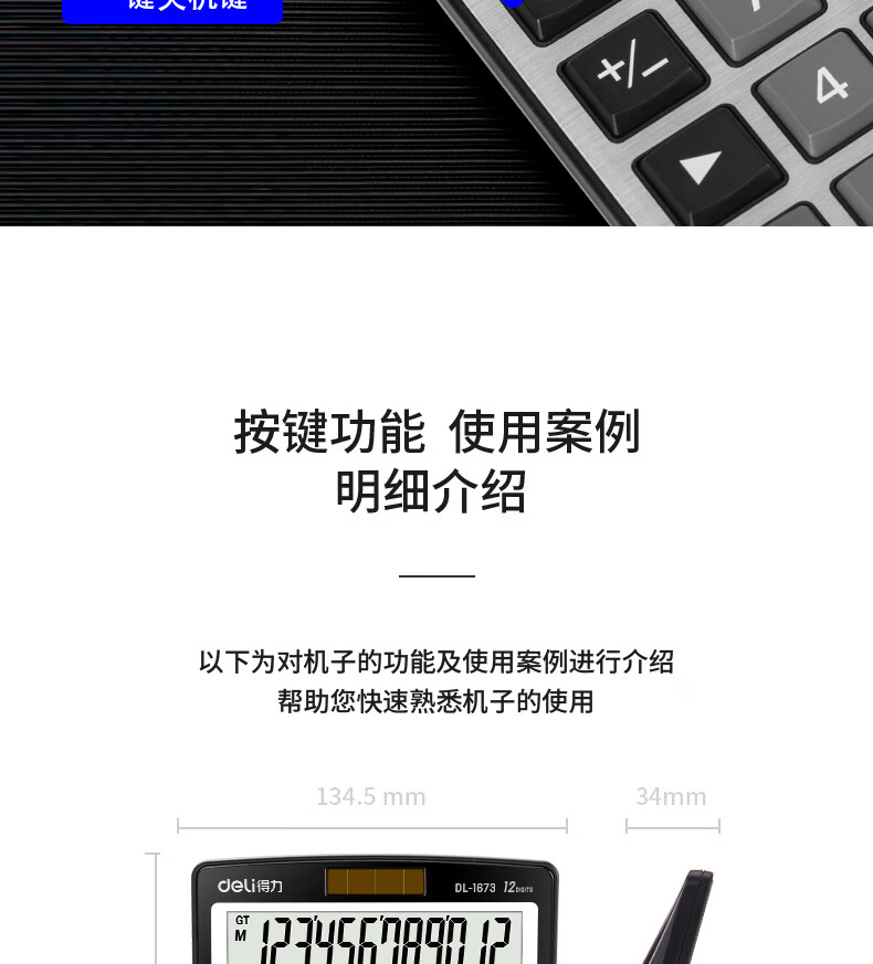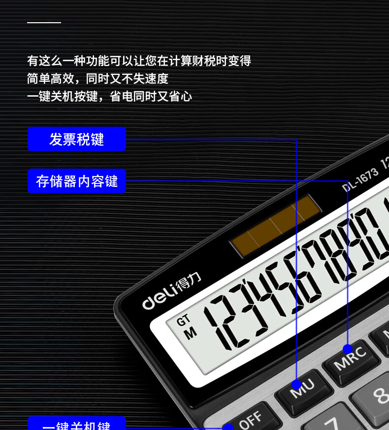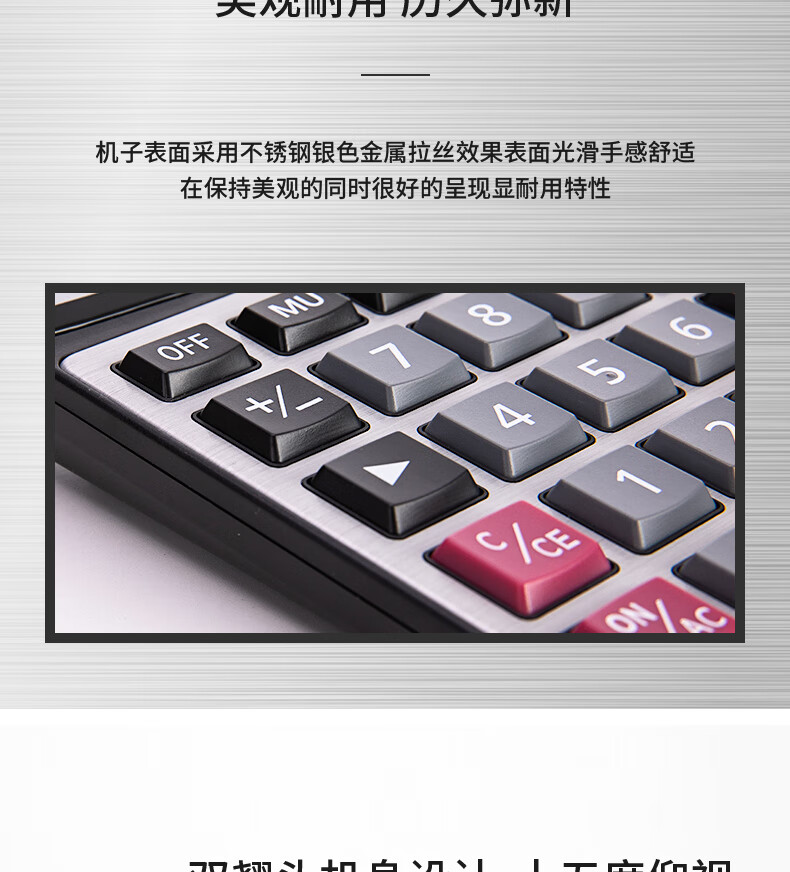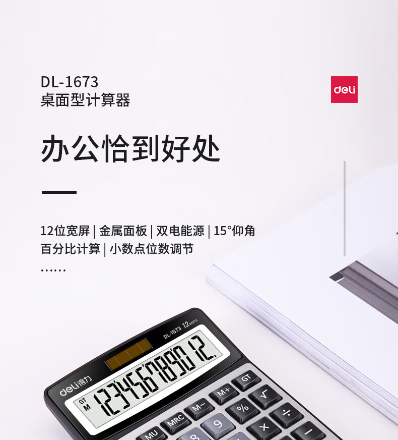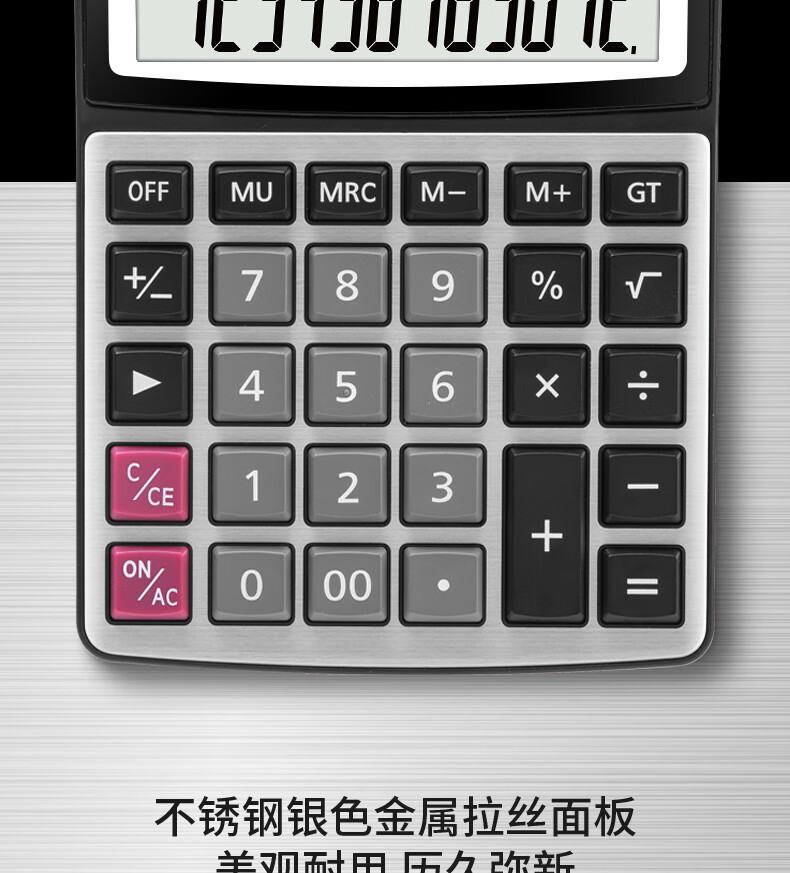 商品名稱:得力1673 金屬面板計算器 財務(wù)金融計算 耐磨按鍵桌面計算機 銀色 單個裝