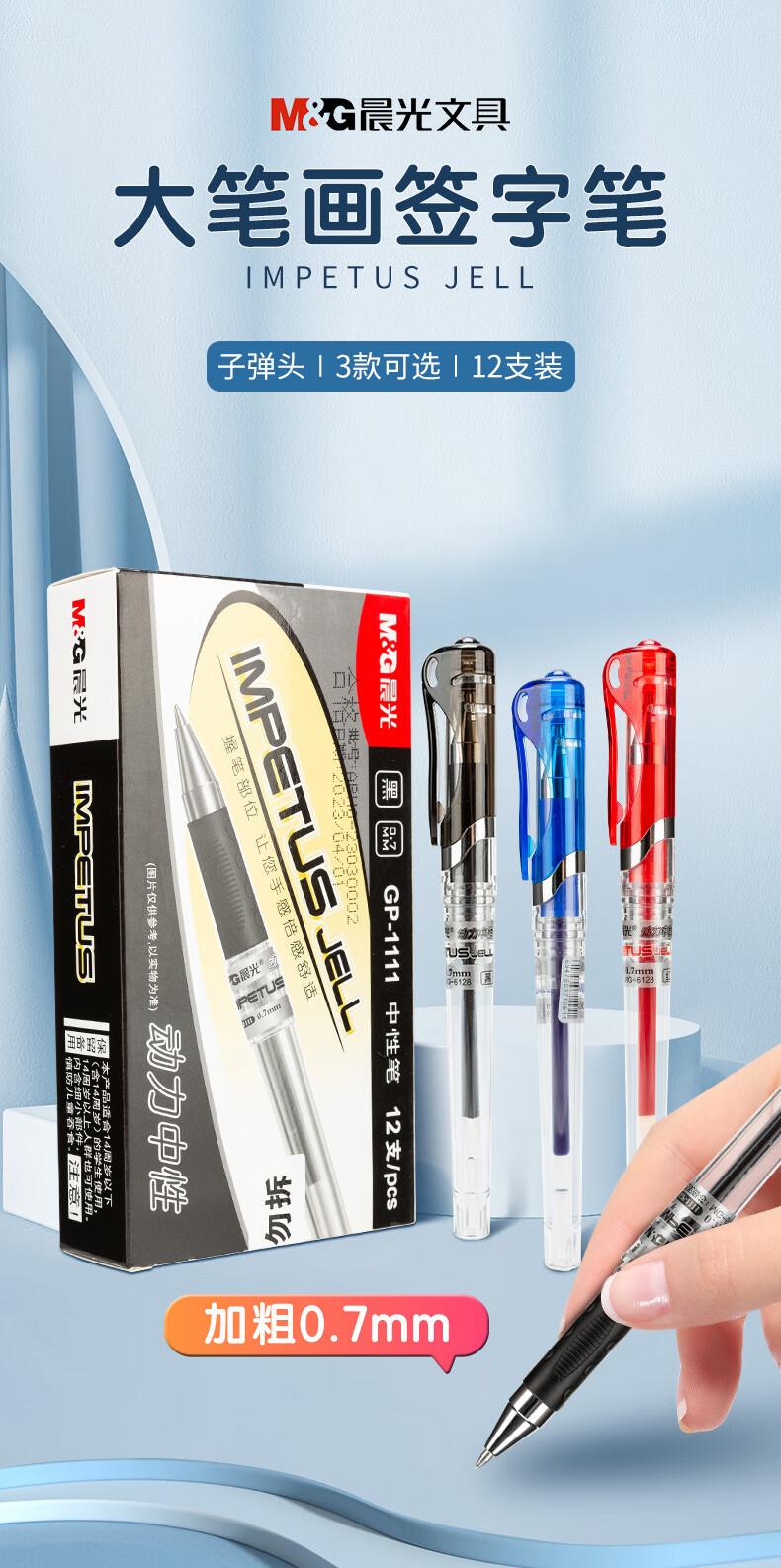 商品名稱:晨光GP1111 中性筆 0.7mm大容量拔蓋子彈頭練字簽字筆 辦公水筆 12支/盒