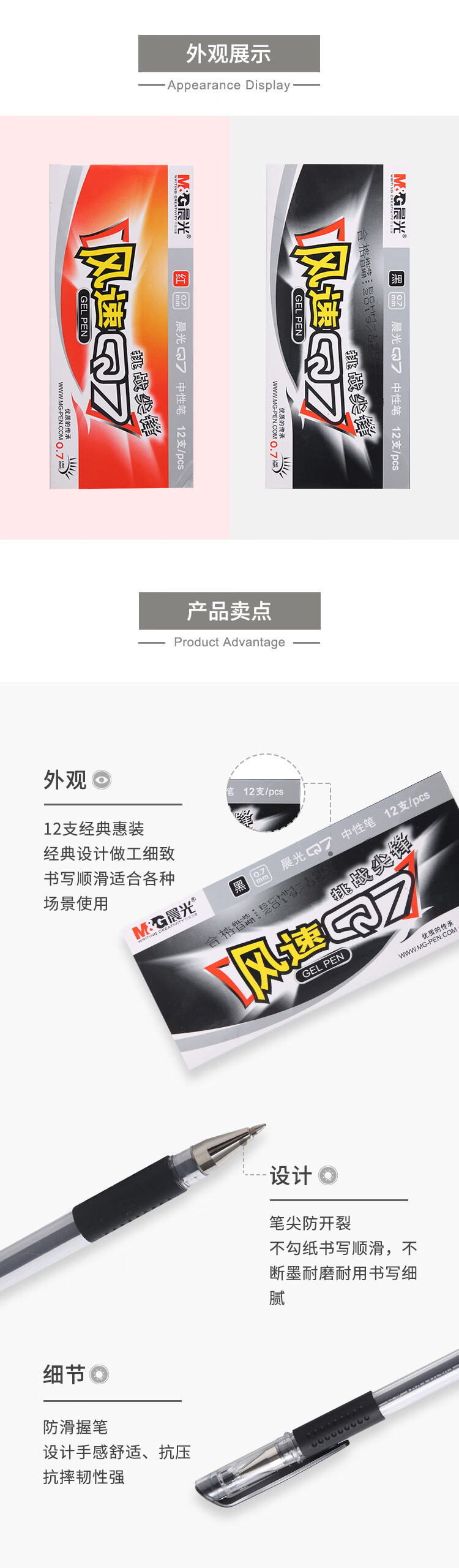 商品名稱:晨光AGP30105 風(fēng)速Q(mào)7黑色中性筆 0.7mm拔蓋款會議筆簽字筆水筆 12支/盒
