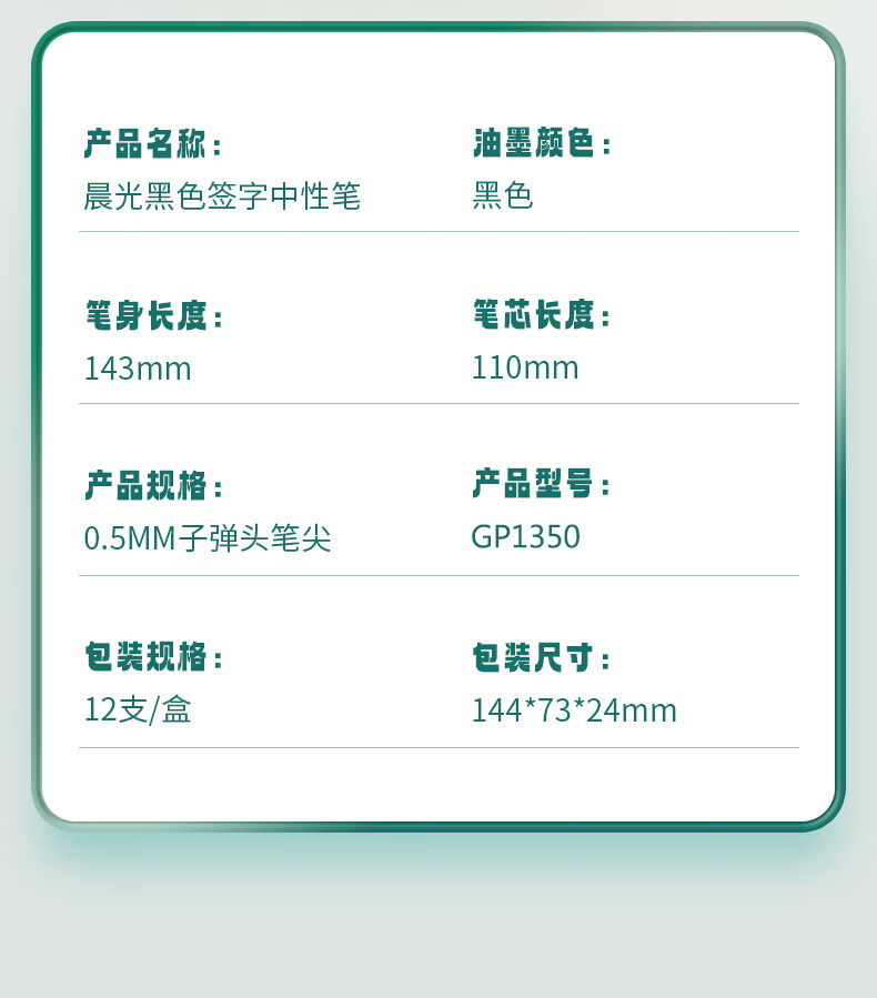 商品名稱(chēng):晨光GP1350 黑色中性筆 0.5mm經(jīng)典子彈頭簽字筆 辦公水筆 12支/盒