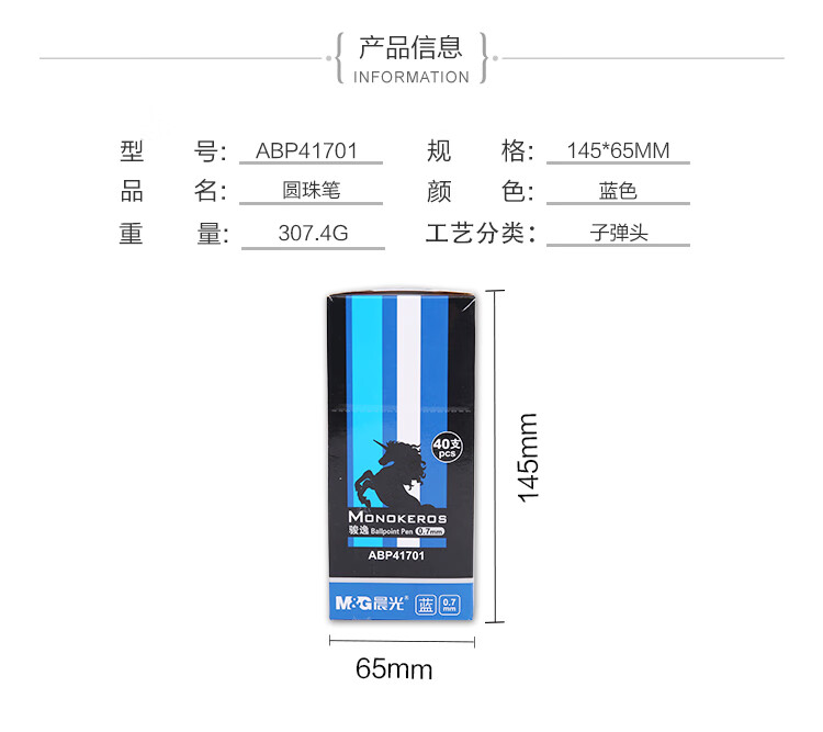 商品名稱:晨光ABP41701 藍色按動圓珠筆 0.7mm子彈頭原子筆 俊逸系列中油筆 40支/盒