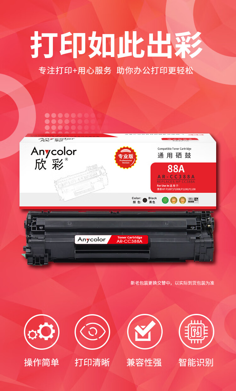商品名稱:欣彩 AR-CC388A專業(yè)版 硒鼓 適用惠普 P1007/P1008/P1106/P1108/M1136/M1213nf/M1216nfh 黑色
