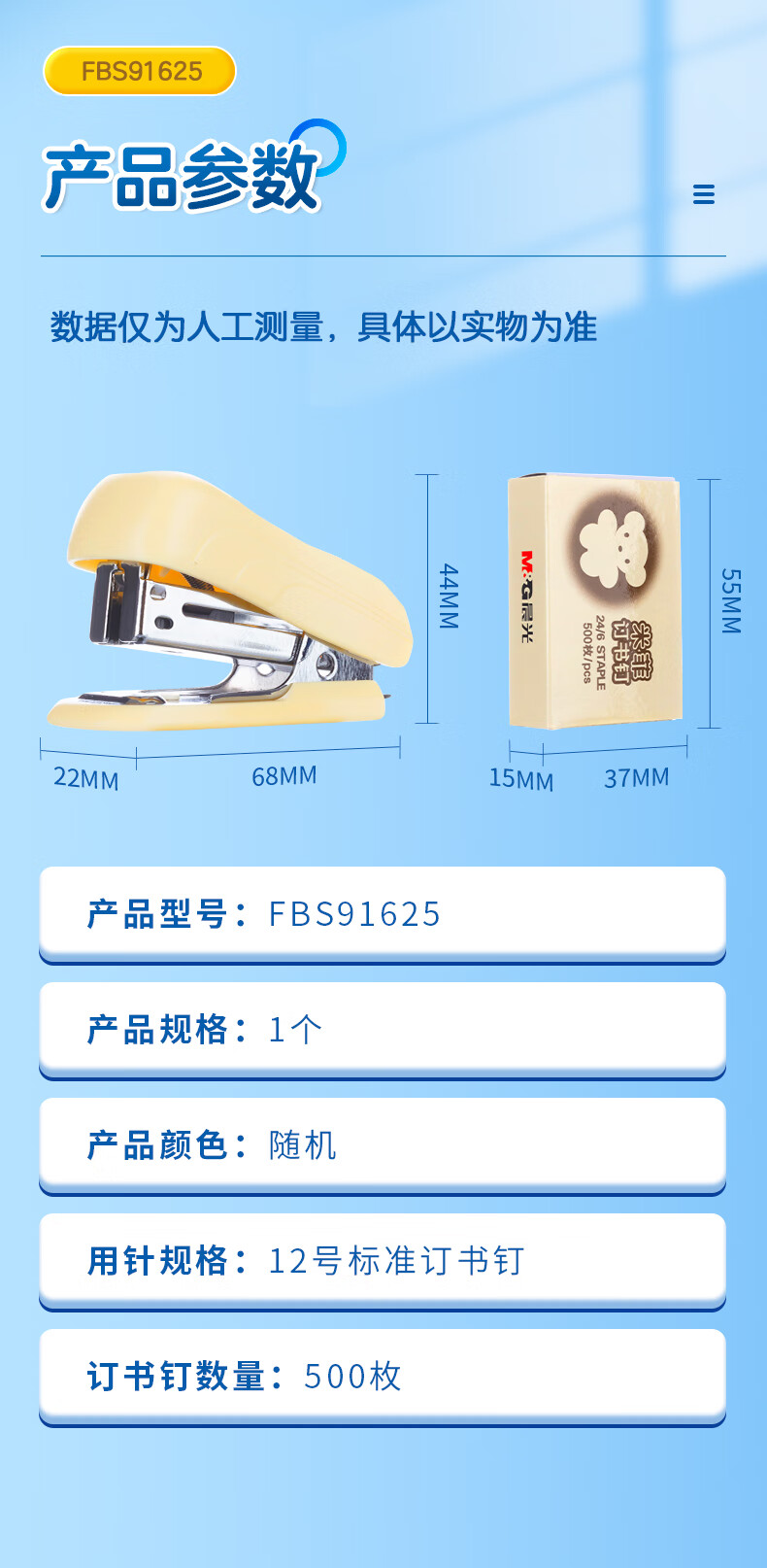 商品名稱:晨光FBS91625 訂書機(jī) 12#小型便攜米菲系列迷你訂書器組合套裝(訂書器+訂書釘) (套)